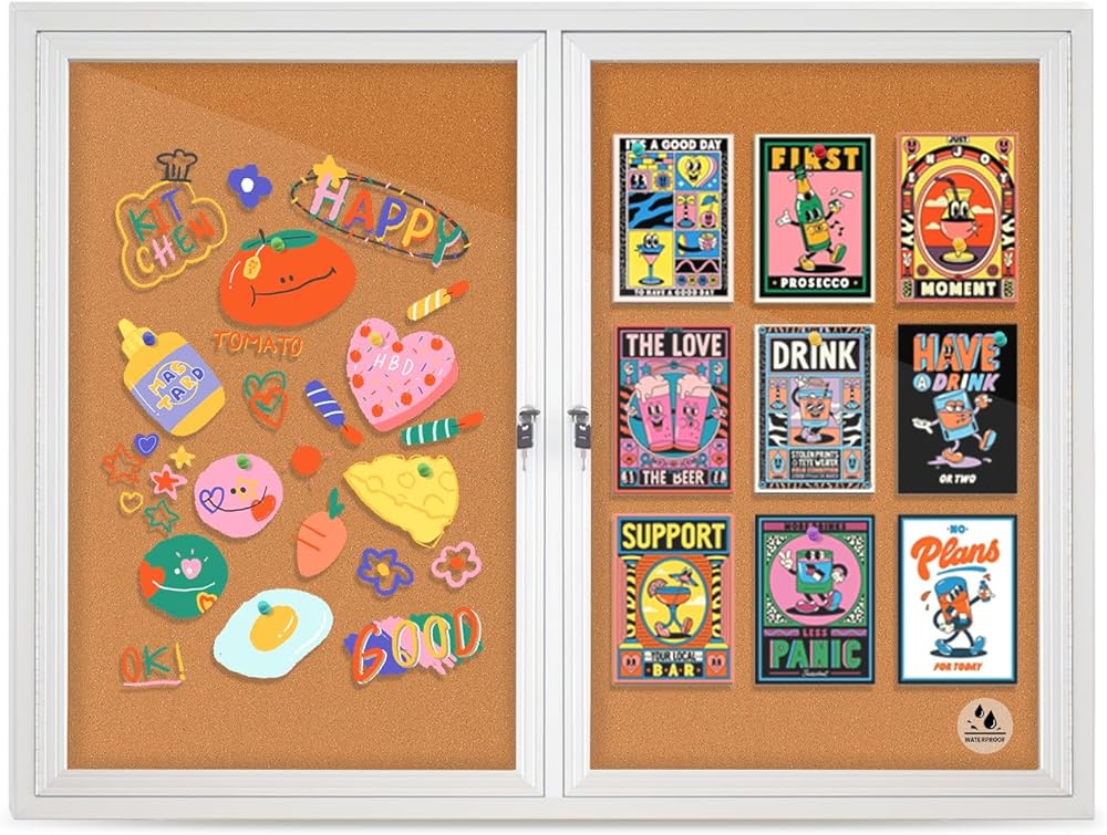 لوحة نشرة نشرة مغلقة في الهواء الطلق مزدوج في الهواء الطلق مع لوحة الإبلاغ المقاومة للحوض مع باب القفل ، لوحة رسائل محمولة على الحائط 44 × 32 بوصة للإشعارات والإعلانات