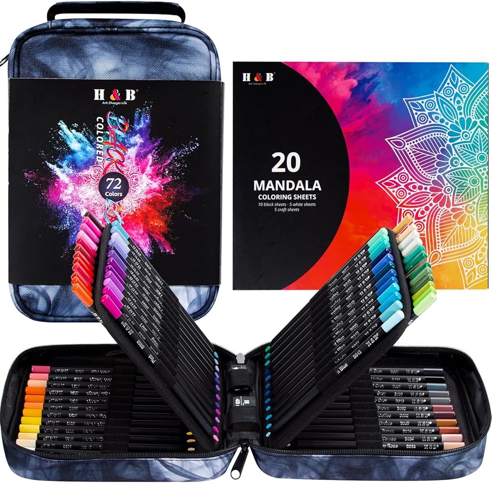 [مجموعة مستلزمات الرسم الكاملة المحترفة]-مجموعة قلم رصاص H & B 82 Pack Art Targing تشمل: 12 أقلامًا ذات ألوان قابلة للذوبان في الماء و 12 أقلامًا من أقلام الرصاص المعدنية الملونة ، و 12 قلصان رسم من الجرافيت ، و 3 أقلامًا من أقلام الفحم السوداء ، و 12 أقلان رصاص ملونًا سوداءًا ، وكتبًا للرسوم والملحقات الأخرى. يتم تصنيف كل قلم رصاص باسم اللون ورقم طراز حتى تتمكن من رسم كما ترى.