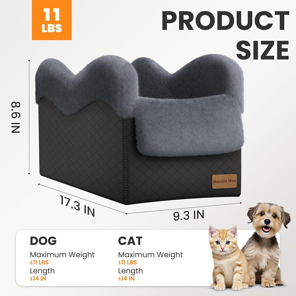 محمولة مقعد صغير للكلب للسيارة ، معززة مقعد السيارة بالوحدة الفاخرة في مركز الكلاب مع تشيترات السلامة ، حاملة السفر للحيوانات الأليفة لسيارات الدفع الرباعي ، شاحنة (سوداء/رمادي)