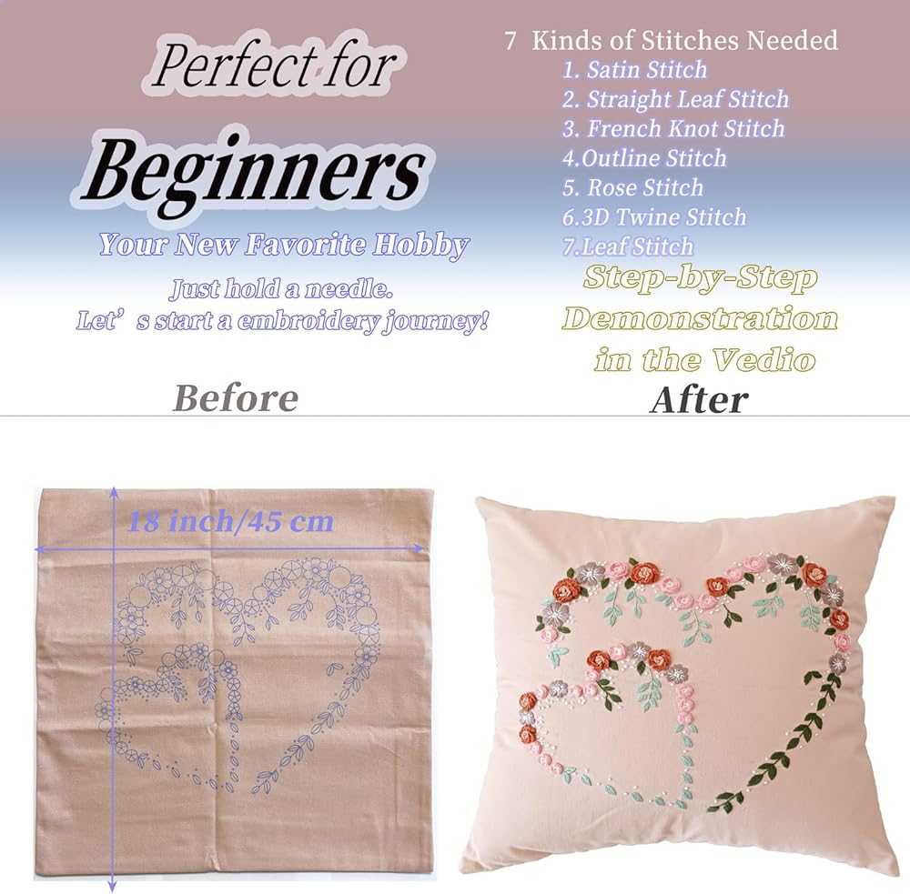 【Handmade Gift Project】DIY embroideried pillow covers make the perfect gift for: Weddings, Birthdays, Graduation, Teachers' gifts, Grandparents, Mother's day, Father's day, Halloween, Thanksgiving day, Christmas...This would be profoundly lovely stitched in specialty threads