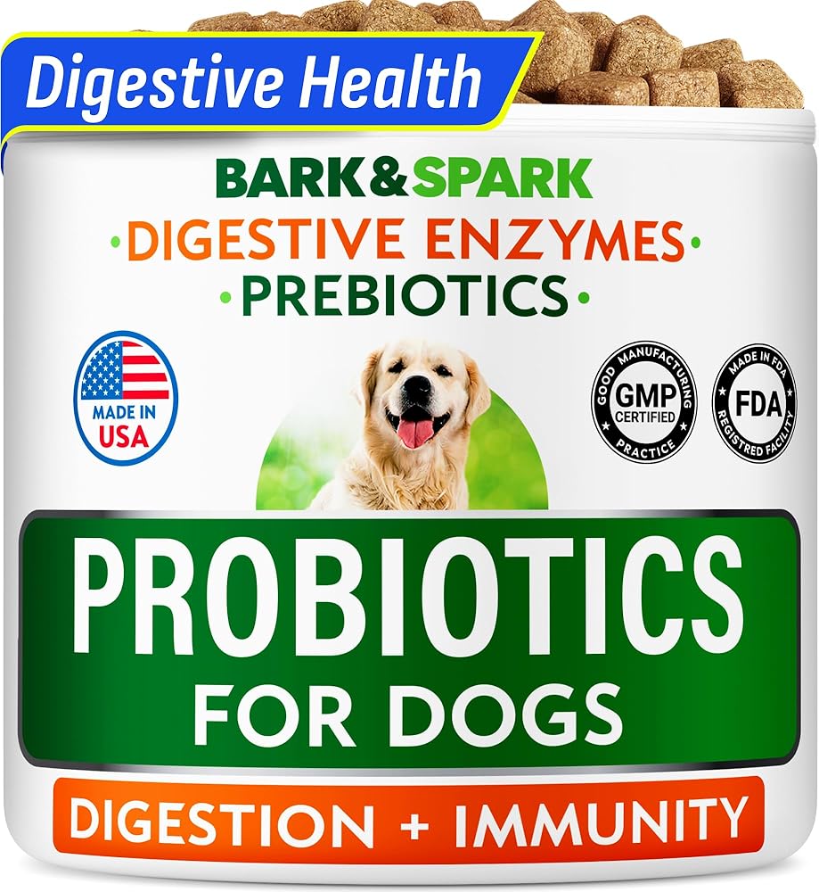 بروبيوتيك الكلاب من بارك آند سبارك لصحة الجهاز الهضمي والإنزيمات - الإسهال والغازات وتخفيف آلام المعدة والحساسية الموسمية - مضغ للهضم - بروبيوتيك للحيوانات الأليفة للكلاب (60 قيراط، دجاج)