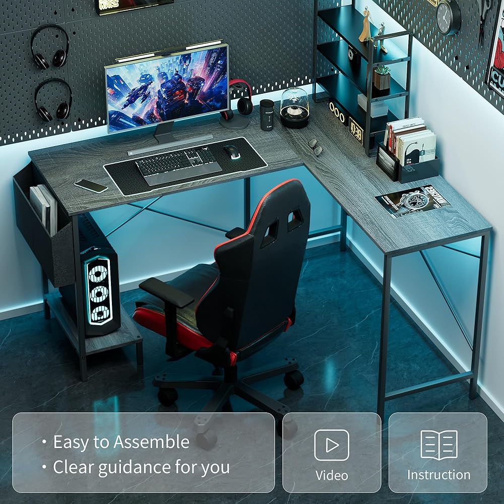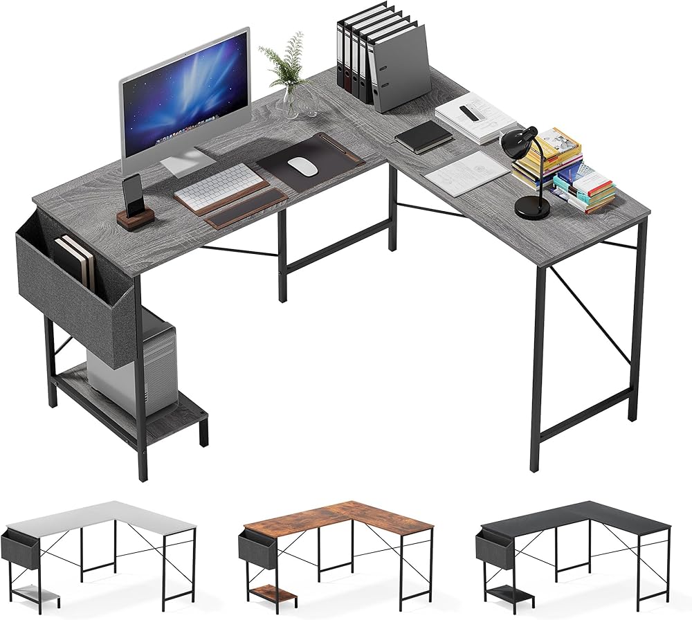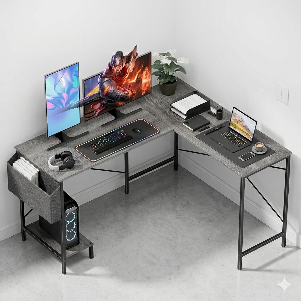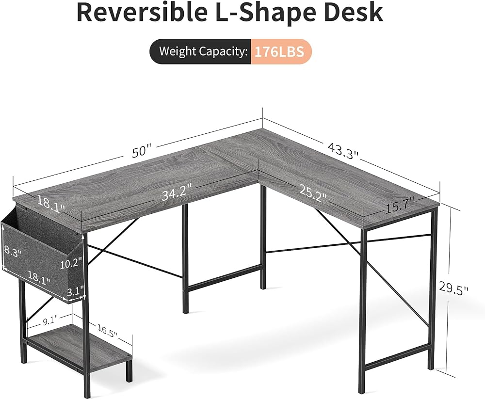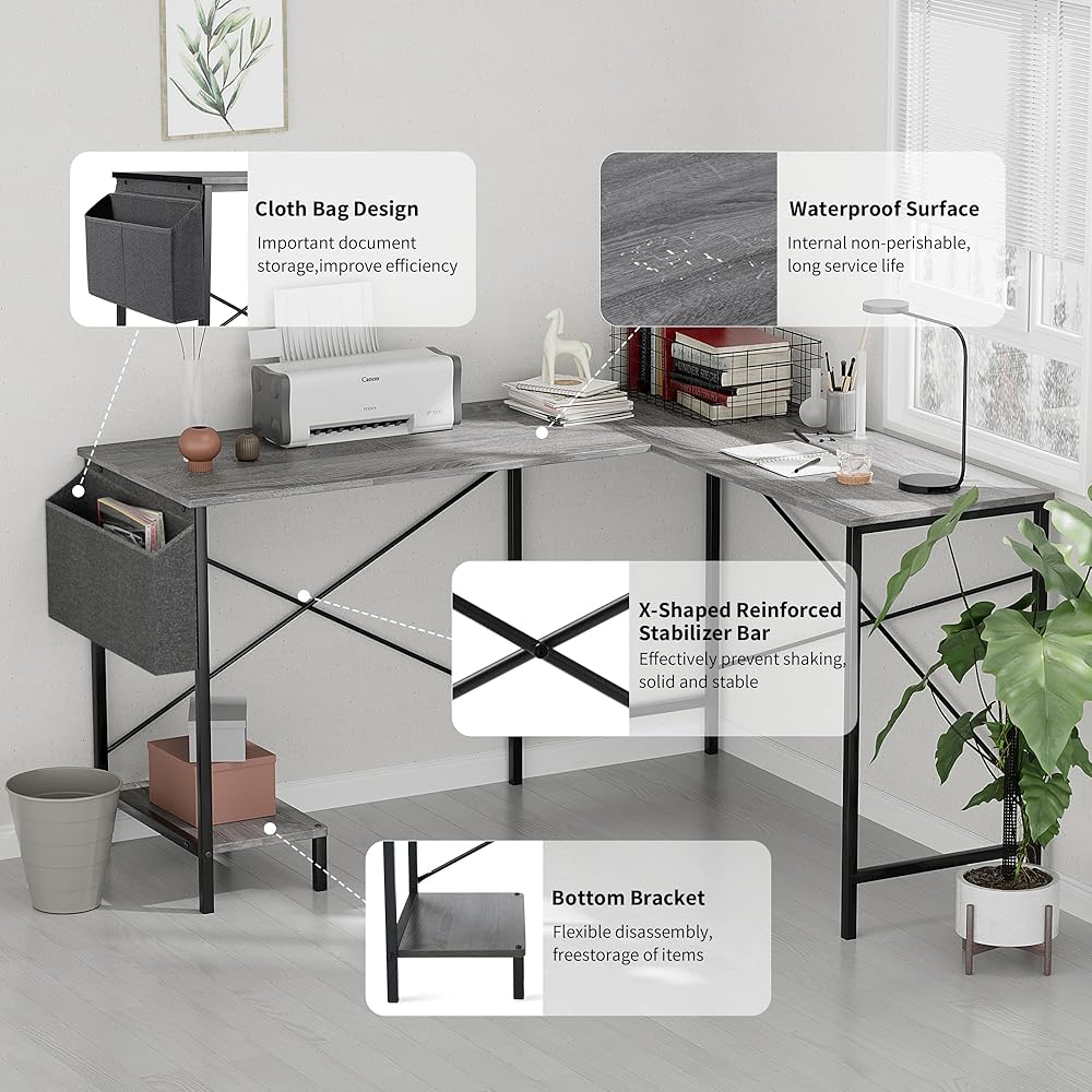 مكتب L على شكل L - 50 "مكتب كمبيوتر مكاتب منزلي قابلة للانعكاس ، أعلى الخشب ، إطار معدني ، حقيبة جانبية ، طاولة زاوية قوية للمكتب للألعاب للعمل ، الكتابة والدراسة ، توفير الفضاء