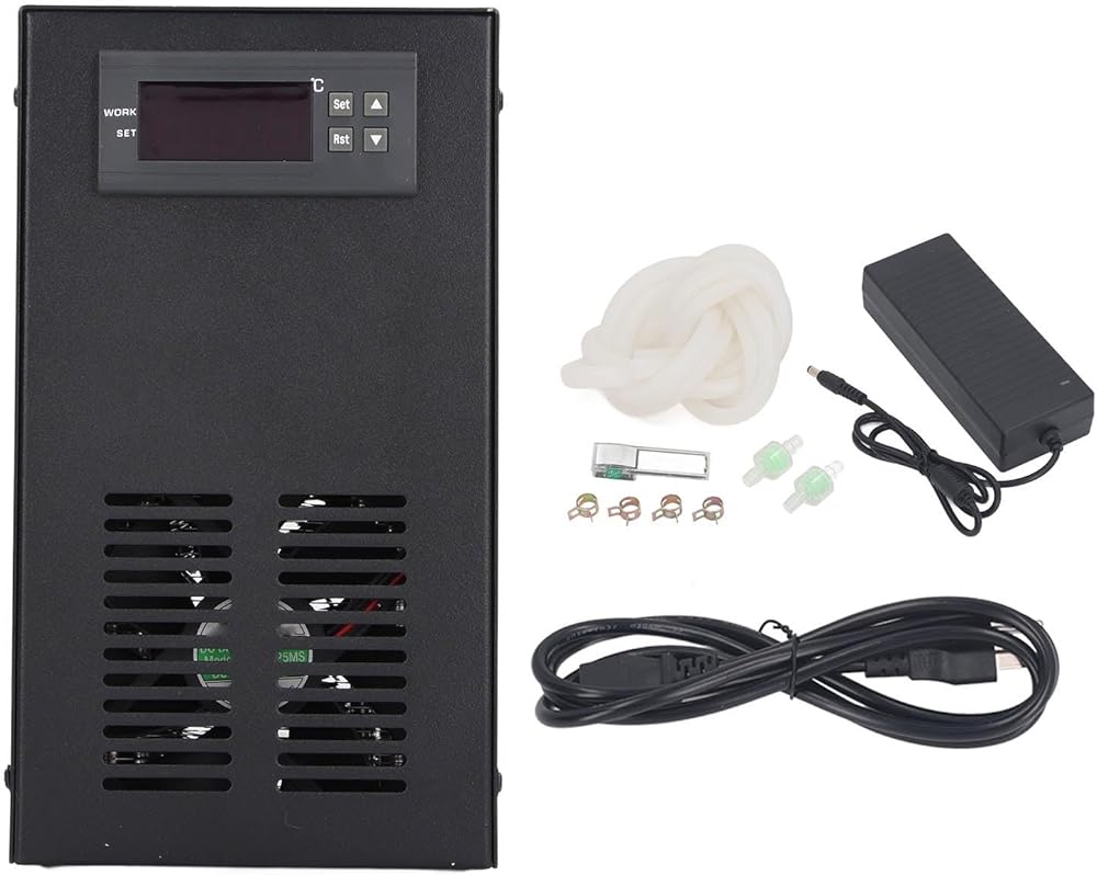 [Quiet Chiller] : This water chiller boasts a built-in silent fan that operates at a low noise level of 30-35 decibels, ensuring a peaceful environment for both you and your hydroponic pets.