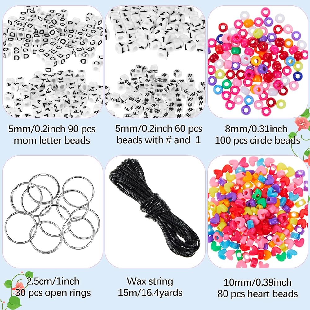 Taiyin 361 PCS/24 Sets Day's Bead Bead Chain Craft Kit Teach Beads Beads Mom Pony Bead Independence Day Dad Dad for Jewelry Making Bead Bead String Star على شكل حبات على شكل DIY