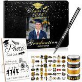 8 Pcs 2025 Graduation Guest Book with Graduation Photo Guest Book Sign Scrapbook Photo Album with DIY Kit Dual Tip Pens and Stickers for Graduation Party