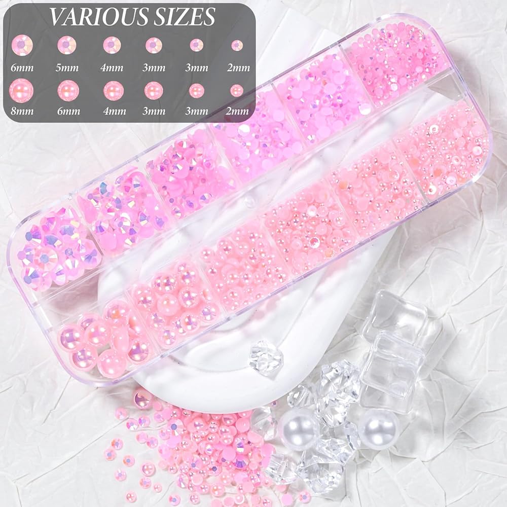أحجام متعددة: تأتي اللؤلؤ نصف المستدير في مزيج من الألوان والأحجام 2/3/3/4/6/8 مم. تأتي أحجار الراين الهلامية Flatback في مجموعة متنوعة من الأحجام 2/3/3/4/5/6 مم. اسمح لك باختيار اللؤلؤ وأحجار الراين بسهولة والاستمتاع بالمرح DIY