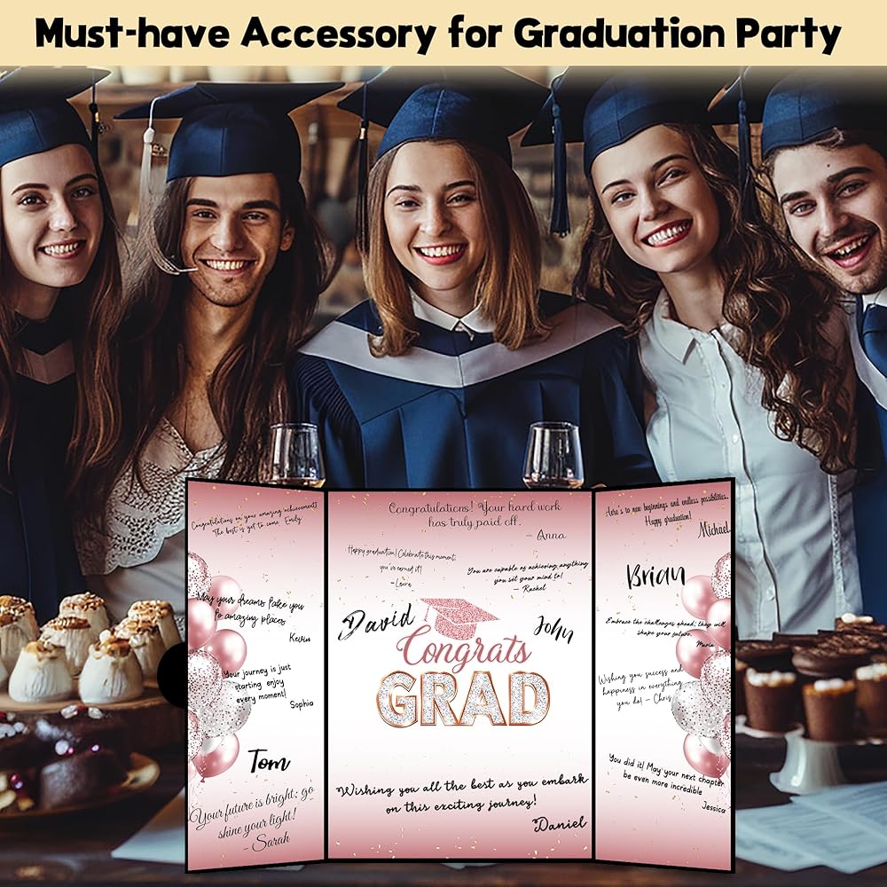 • ديكورات التخرج 2025 دفتر الضيوف: احتفل بكتاب ضيوف التخرج 2025. التقاط الرسائل القلبية والتوقيعات والتمنيات الجيدة من زملاء الدراسة والمعلمين والأصدقاء والعائلة - وهي ذاكرة ستقوم بها لسنوات قادمة.