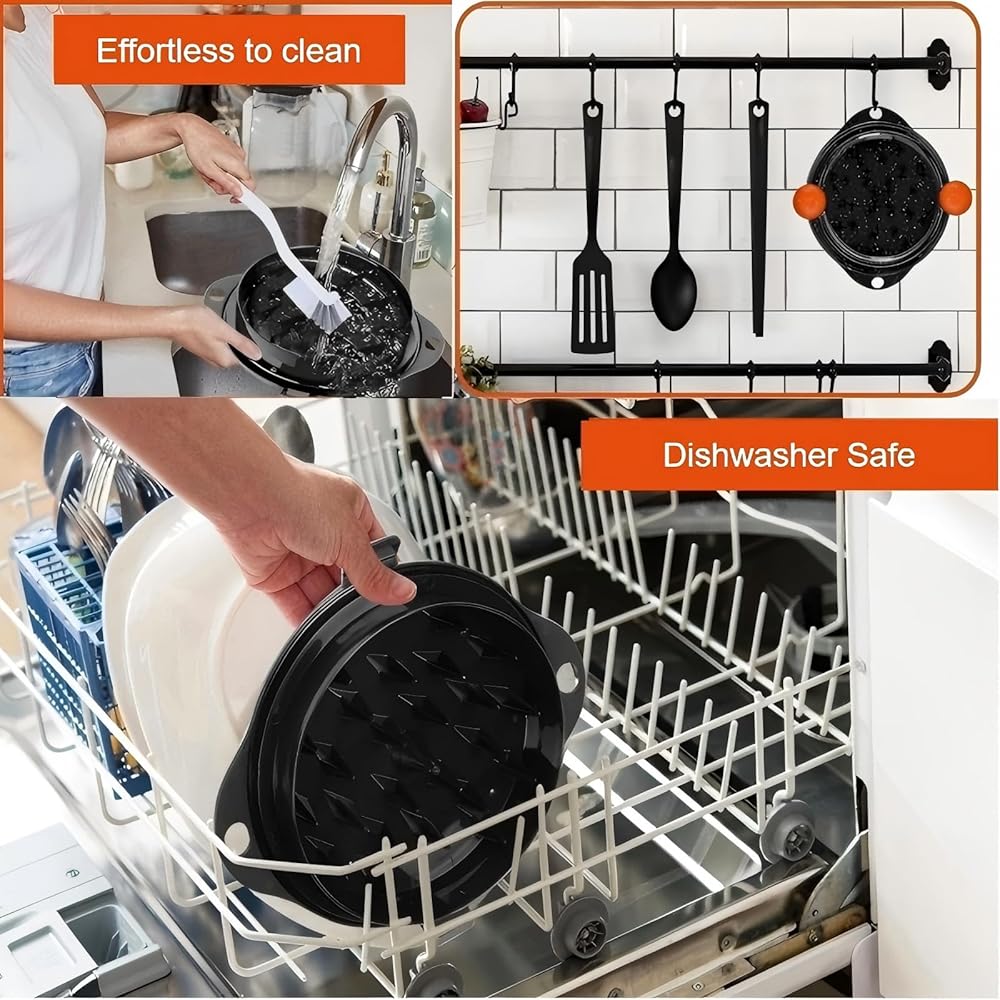 مقاطع فريدة وتصميم معلق لسهولة التخزين: لا مزيد من الأجزاء المفقودة! بتصميم مقاطع/مشابك فريدة من نوعها ، تطوي أداة تمزيق اللحوم هذه إلى قطعة واحدة مضغوطة بعد الاستخدام.