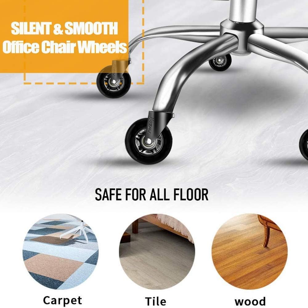 آمنة على جميع الأرضيات - لا حاجة لسجادة الكراسي - عجلات كرسي المكتب هذه مغطاة بطبقة بولي يوريثين ناعمة عالية الجودة وسميكة للغاية لا تترك علامات لمنع الخدوش أو ترك علامات على أي سطح حتى إذا لم يكن هناك سجاد أو سجادة للكرسي. يستخدم على نطاق واسع لأرضيات المكتب والخشب الصلب والباركيت والأسطح المعزولة والفينيل والبلاط والأرضيات والسجاد.
