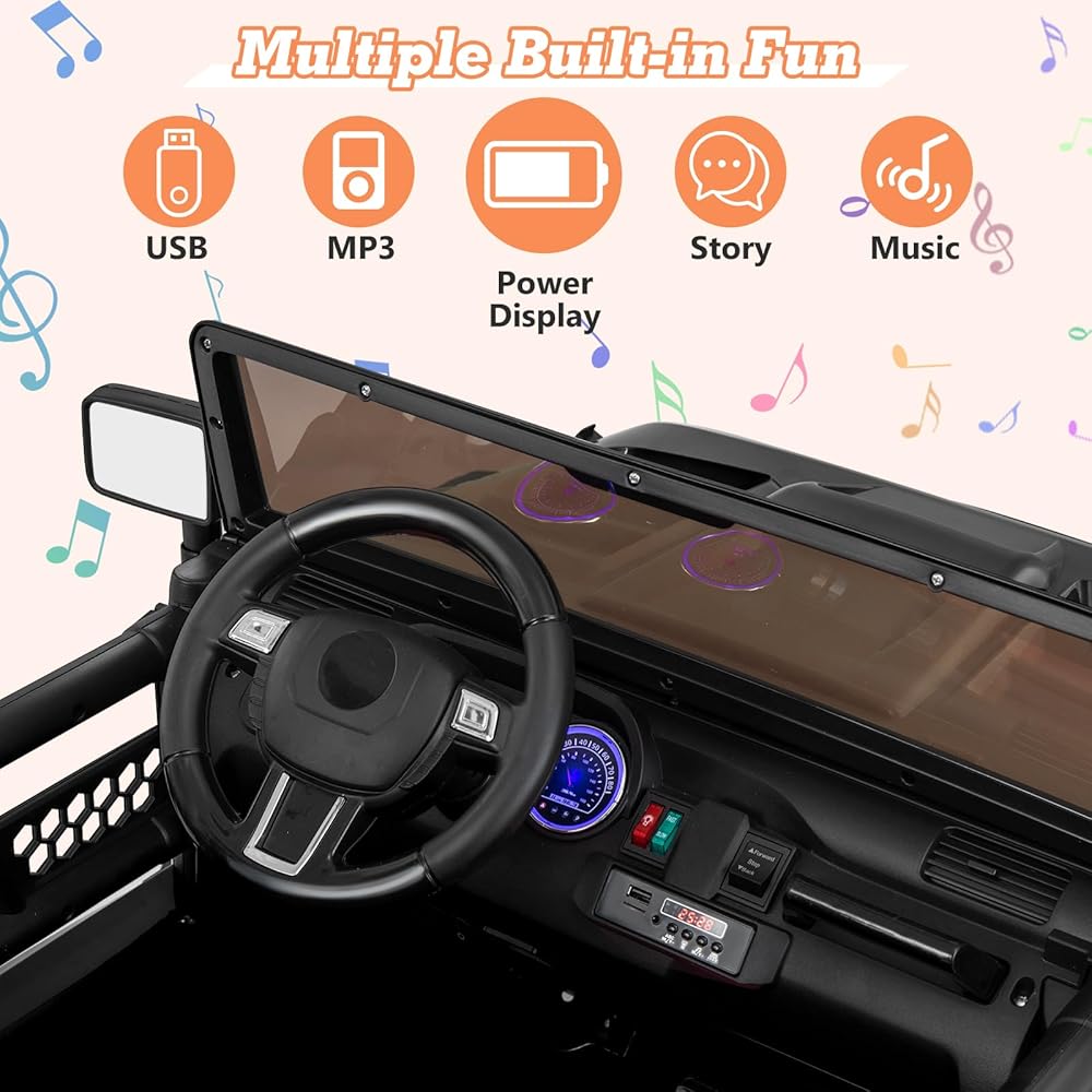التصميم الفسيح للمقعدين: يمكن للسيارة ذات المقعدين استيعاب طفلين بسهولة (3-5 سنوات من العمر) أو أطفال واحد يتراوح أعمارهم بين 4-8 لقيادة ، وهو كبير بما يكفي لكلا الأطفال لتمديد القدمين بشكل مريح. يأتي كل مقعد مع حزام أمان من 3 نقاط لضمان سلامة الأطفال أثناء الركوب. تبلغ سعة الوزن القصوى لهذا الأطفال ركوب اللعبة 110 رطلاً