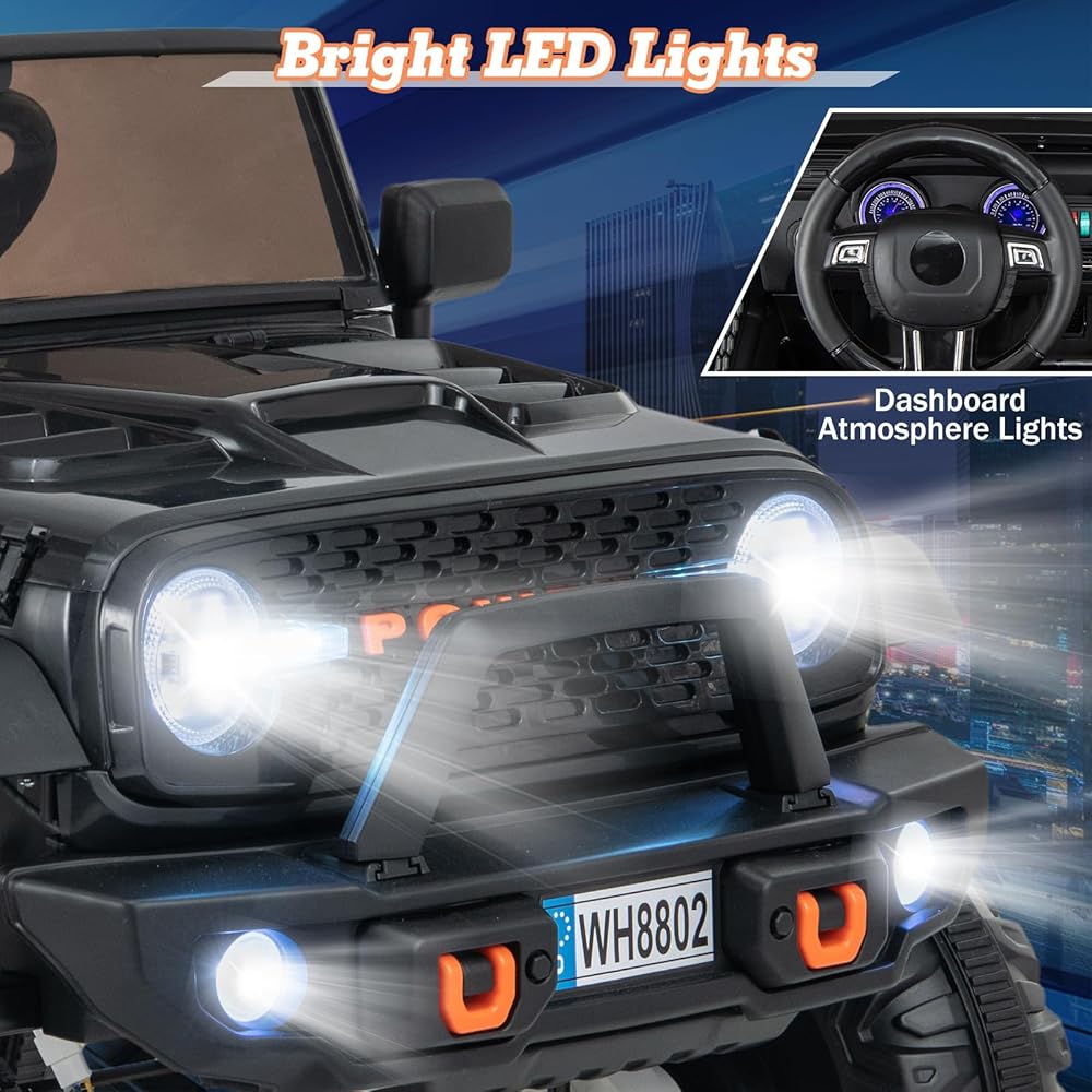 التحكم اليدوي والوالدين: يمكن للطفل التحكم في الشاحنة عن طريق التشغيل اليدوي. بالنسبة للآباء والأمهات ، يمكنهم التحكم في سيارة لعبة عن بعد 2.4 جيجا هرتز ، وهناك 3 سرعات قابلة للتعديل: 2.4-2.8-3.7 ميل في الساعة. يمكن للوالدين استخدام جهاز التحكم عن بُعد لزيادة وقت اللعب مع الأطفال وتحسين سلامة الأطفال أثناء القيادة