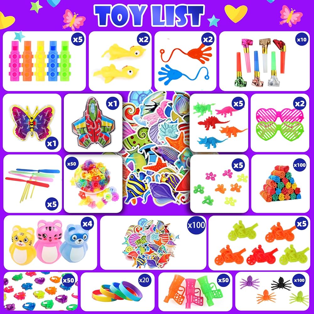 High quality novelty toy set for kids. Every fidgets party gift toy is made from high quality materials. It has passed rigorous safety tests. Very safe for children and adults. Suitable for goodie bag stuffers,treasure chest,birthday party favors,classrom prize,treasure box,carnivals,prize boxes toys,piñata filler,kids christmas presents,bulk fidget toys,kids party supplies,stocking stuffers,school classroom rewards.