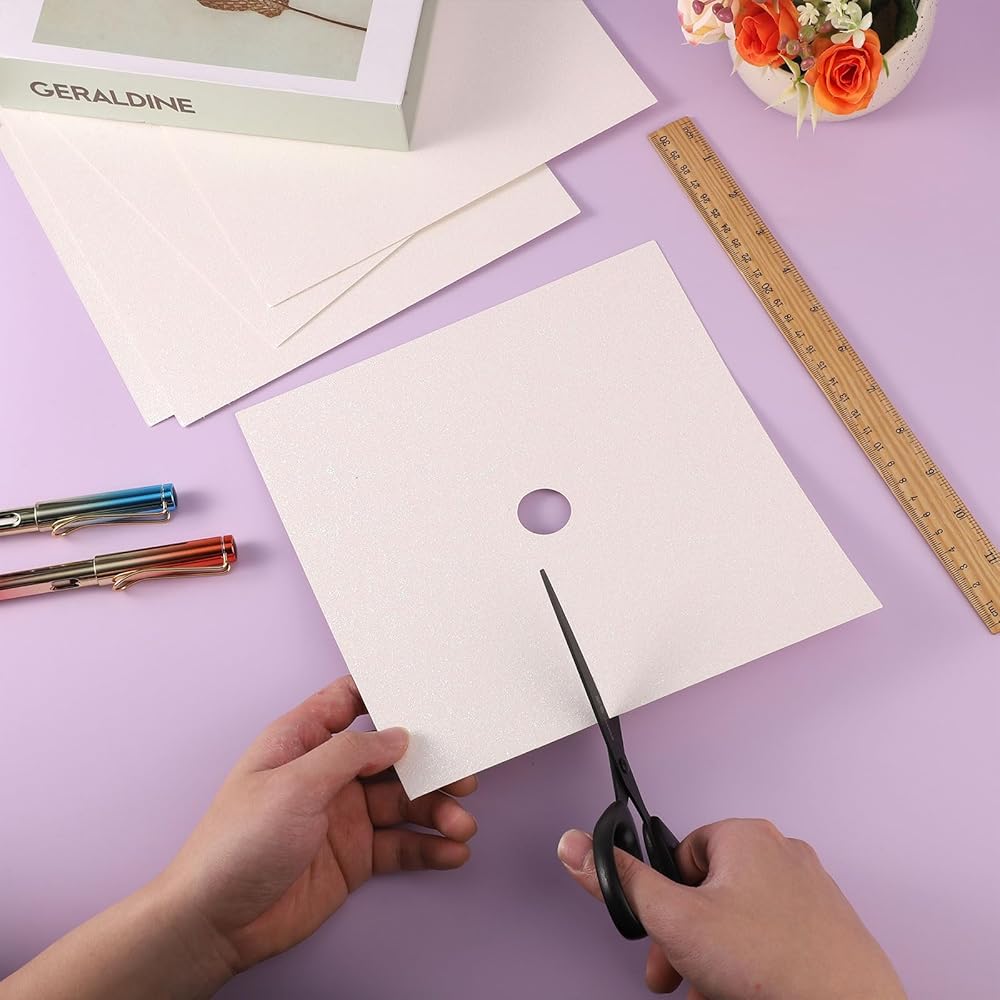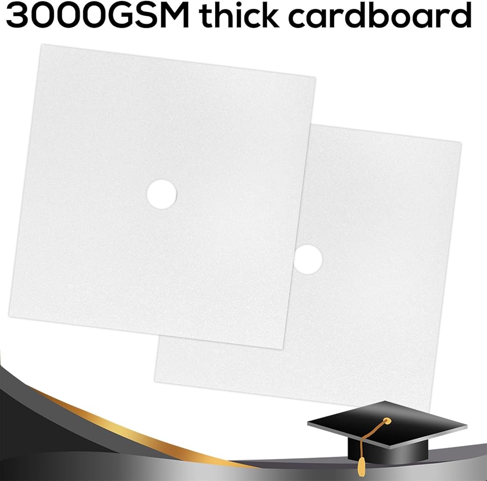 Product Size: Each sheet of graduation grad cap decorations construction paper measures about 9.06x9.06in/23x23cm, which is suitable for standard graduation caps. The pre-cut hole in the center is about 0.98in/2.5cm in diameter, leaving space for the tassel.
