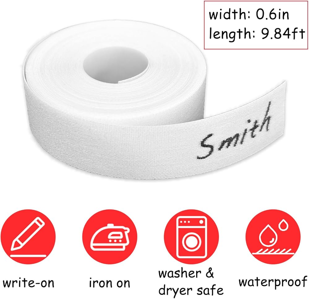 مكواة قابلة للكتابة على ملصقات الملابس ، 0.6 بوصة × 9.84 قدم ، علامات الأسماء النسيج العلامات للرعاية النهارية ، دار التمريض ، المخيم ، المدرسة ، الغسيل ، تنظيم ، غسالة ومجفف آمنة ، مع علامة واحدة دائمة النسيج
