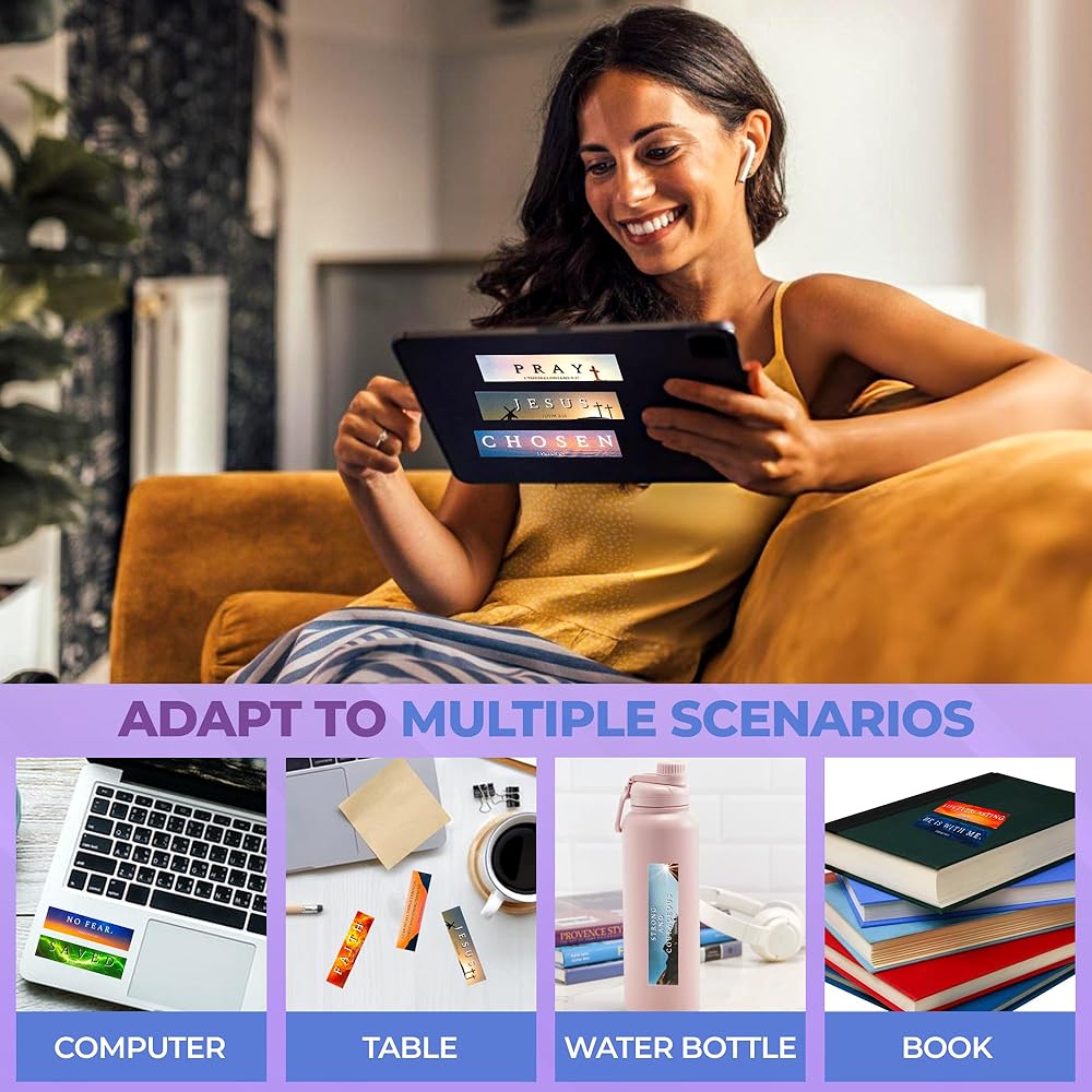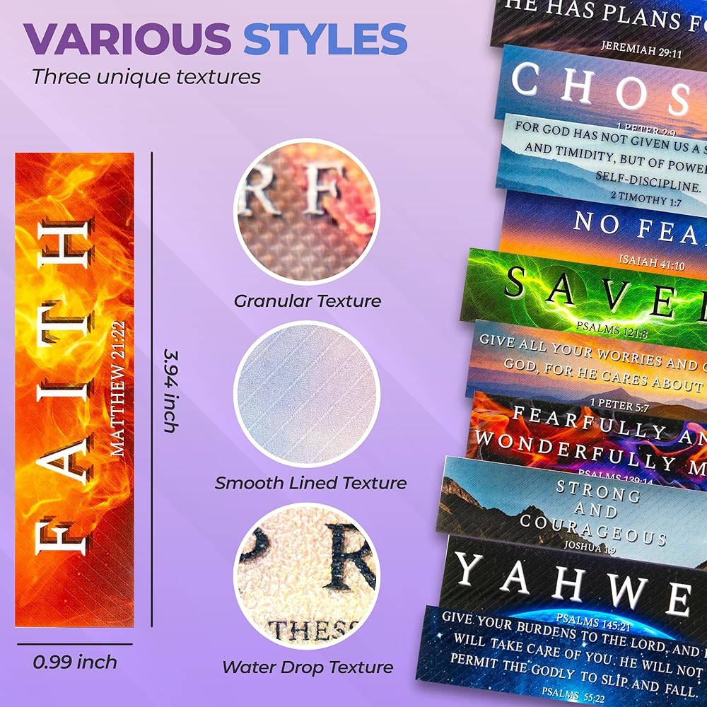 ✨【 مرئيات ملفتة للنظر】 استمتع بالملصقات الحسية مع ثلاثة تصميمات سطحية عن طريق اللمس - الحبيبية ، إسقاط الماء ، وذات ناعمة. مثالي للملابين وأولئك الذين يتمتعون بمشاهدة القوام المختلفة الذين يريدون أيضًا تشجيعهم على آيات الكتاب المقدس. حجم الملصق 4 بوصات × 1 بوصة.