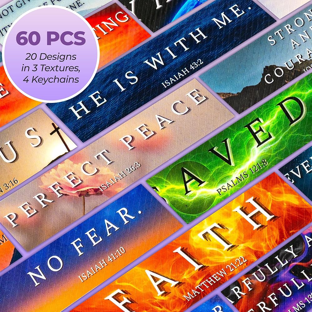 ✨【 تتضمن الحزمة】 تحتوي كل حزمة على 60 شريط ألعاب تململ تشمل 20 تصميمًا مختلفًا في 3 قوام و 4 مفاتيح. كل قطاع فكر في وتصميمه من قبل المسيحيين بنية تشجيعك عندما تشعر بالقلق من آيات الكتاب المقدس للتأمل وتفوق لهيب إيمانك ولكن أيضًا لإلهام من حولك لإثارة محادثة مع صور جميلة وكلمات مذهلة.