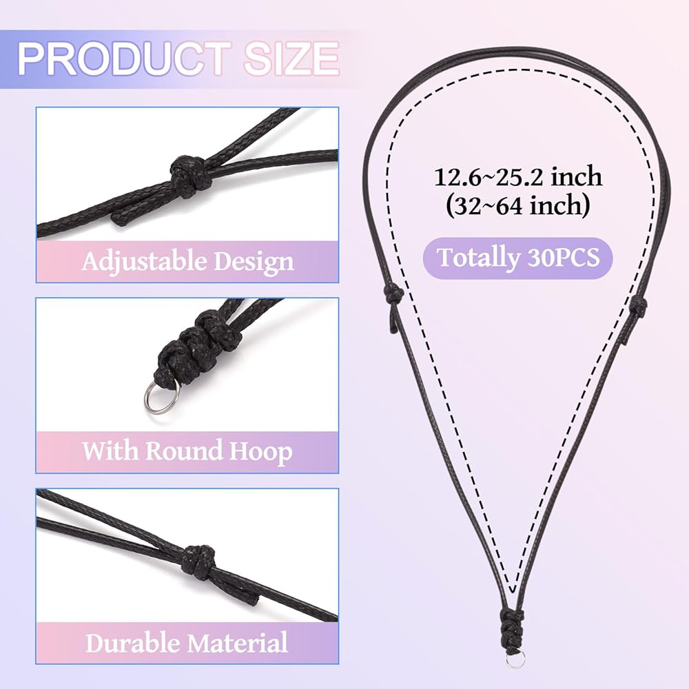 Value Pack: 30pcs Adjustable rope necklace cords for men women, large quantity can meet your different pendant necklace making craft needs and sharing demands.