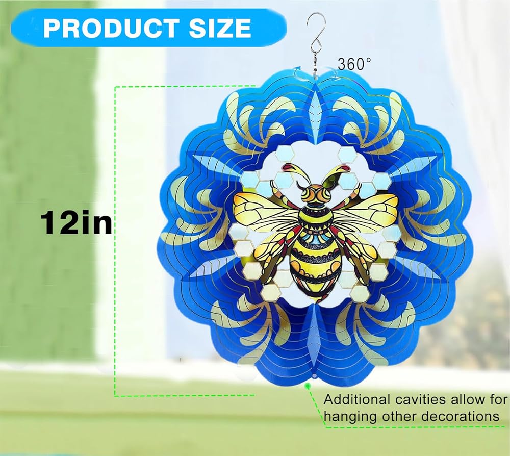 2. [Swivel Hook for Easy Hanging] - 12-inch Colorful Hanging wind spinners outdoor. No additional installation equipment required. Comes with a S-shape swivel hanging hook can rotate 360°, creating a magical 3D stereoscopic visual effect by different colors of the surface.