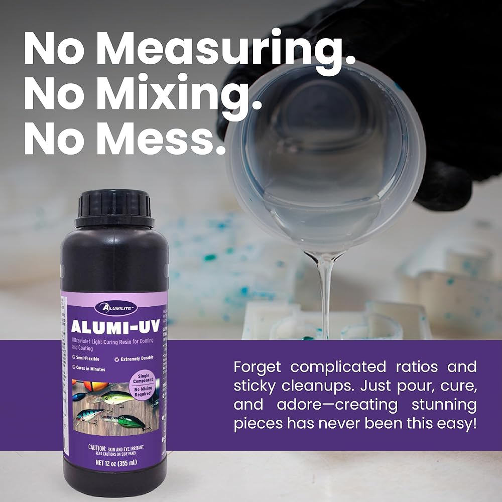 • سهلة الاستخدام-الهروب من متاعب القياس والخلط مع مجموعة راتنجات Alumi-UV! استمتع بساطة صب ، وعلاج ، وإعجاب. شاهد مشروعك في الحياة تحت ضوء الأشعة فوق البنفسجية (365-395NM) في غضون 2-10 دقيقة فقط!