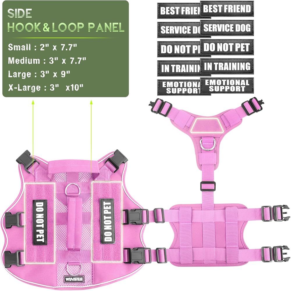 【شبكية التصميم تسخير مع 10 بقع الكلاب】: هذا الكلب التكتيكي تسخير مع شبكة ناعمة التنفس يساعد الكلب على الحصول على تدفق هواء إضافي ، سريع الجفاف لجميع المواسم. تسخير شبكة Aire لها نوبة جيدة واستقرار إضافي. تحتوي الحزمة على تسخير سترة الكلاب و 10 قطع من بقع الكلاب مع رسائل مخيطة ، مثل "خدمة الكلب" ، "لا أليف الحيوانات الأليفة" ، "في التدريب" ، "الدعم العاطفي" و "أفضل صديق" ، كمية كافية لك لتزيين تسخير سترة الكلب.