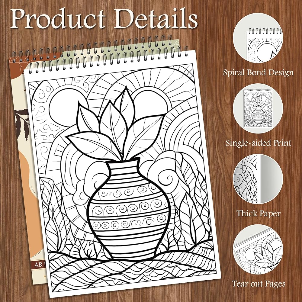 الطباعة أحادية الجانب: تتم طباعة كل صفحة على جانب واحد لمنع النزيف. يسمح الربط الحلزوني المريح للكتاب بوضعه مسطحًا ، مما يجعل من السهل تلوينه دون التقليب صفحة