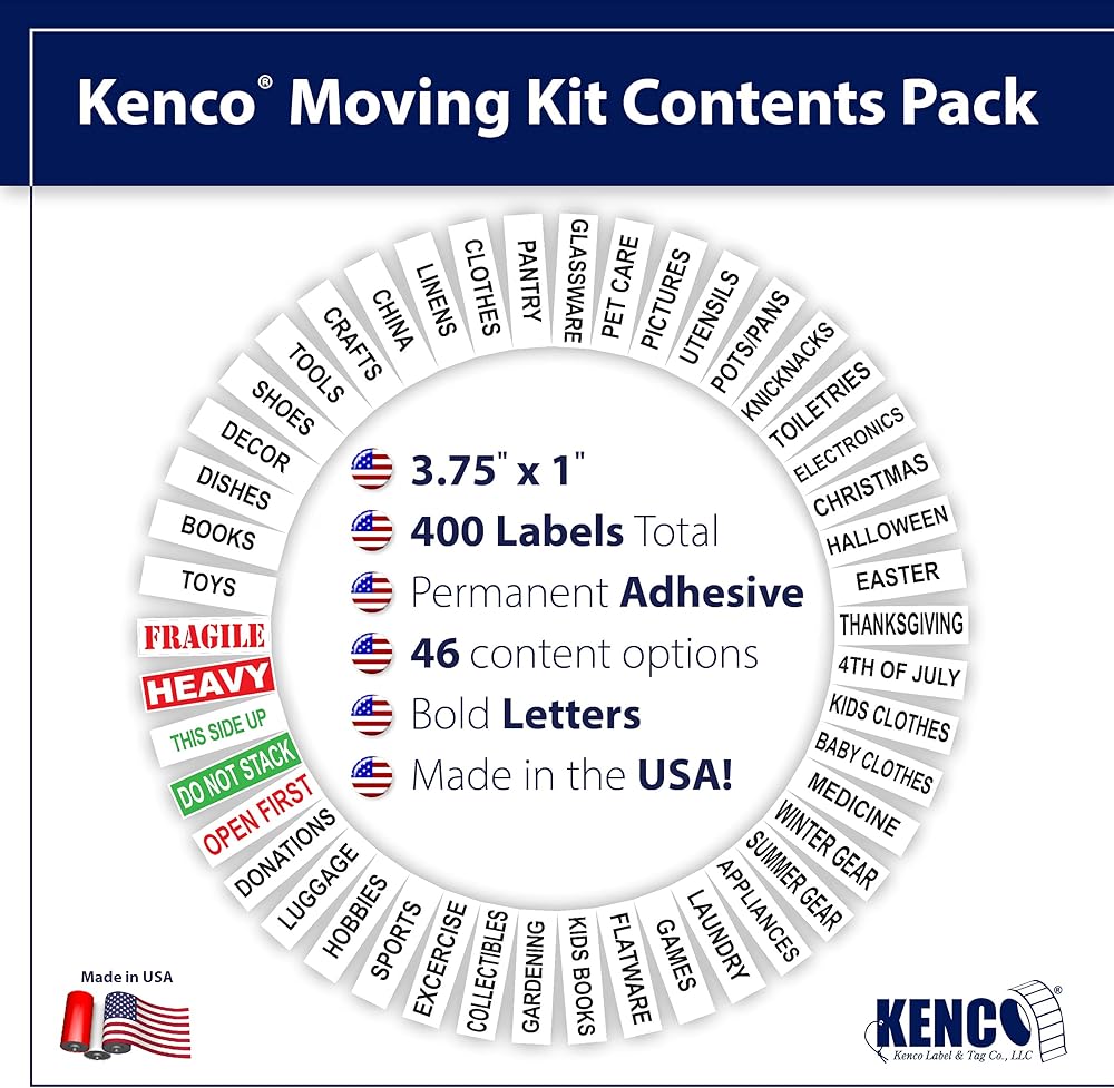 BE NOTICED – Made in 15 Vibrant Colors, these moving labels will be seen on your boxes. Whether moving yourself or using movers, these labels will stick out from the sea of brown so everyone knows where to put your boxes! STAY ORGANIZED – Moving is stressful enough as is without having the hassle of re-moving once you've already reached your destination! Get every box to the right room the first time and avoid the hassle of constant questions from movers with a simple, organized method to the madness! WITH GREAT ADHESIVE COMES GREAT RESPONSIBILITY – These labels are designed to stick well to your boxes even when jostled, bumped, or dropped. An adhesive this strong will take finish off of furniture though so please only apply to boxes! MADE IN THE USA – ALL THE WAY – From raw material and design to assembly and shipping, this product is entirely made in the USA. We are a third generation family business operating in the heartland of the USA – providing jobs, insurance, and the coolest jobs our toddlers can imagine right here in the United States ROOMS ENOUGH TO SPARE – This moving pack has over 400 labels, with strategic counts to ensure you have enough for your entire house! Please note, mega mansion owners may need larger packs that include “COACH HOUSE” and “BEDROOM #18.”