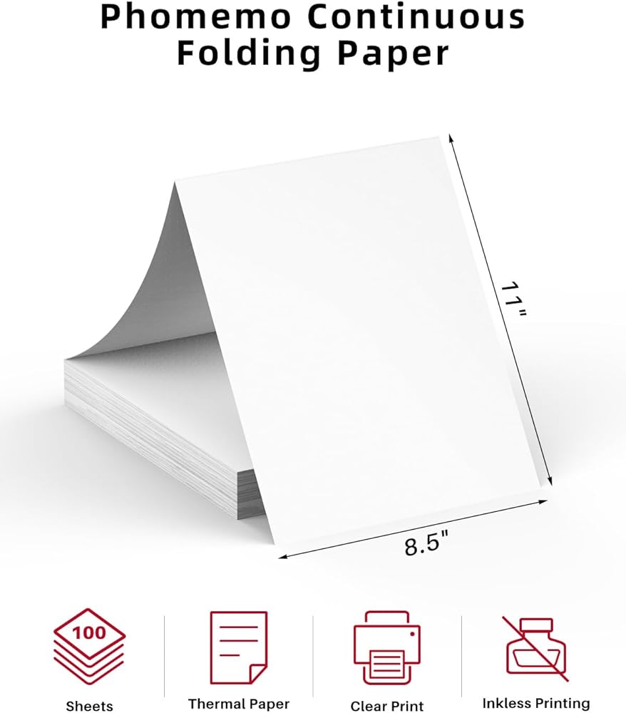 Versatile Compatibility: Phomemo Folding Thermal Paper: US Letter Size, 100 Sheets/Pack