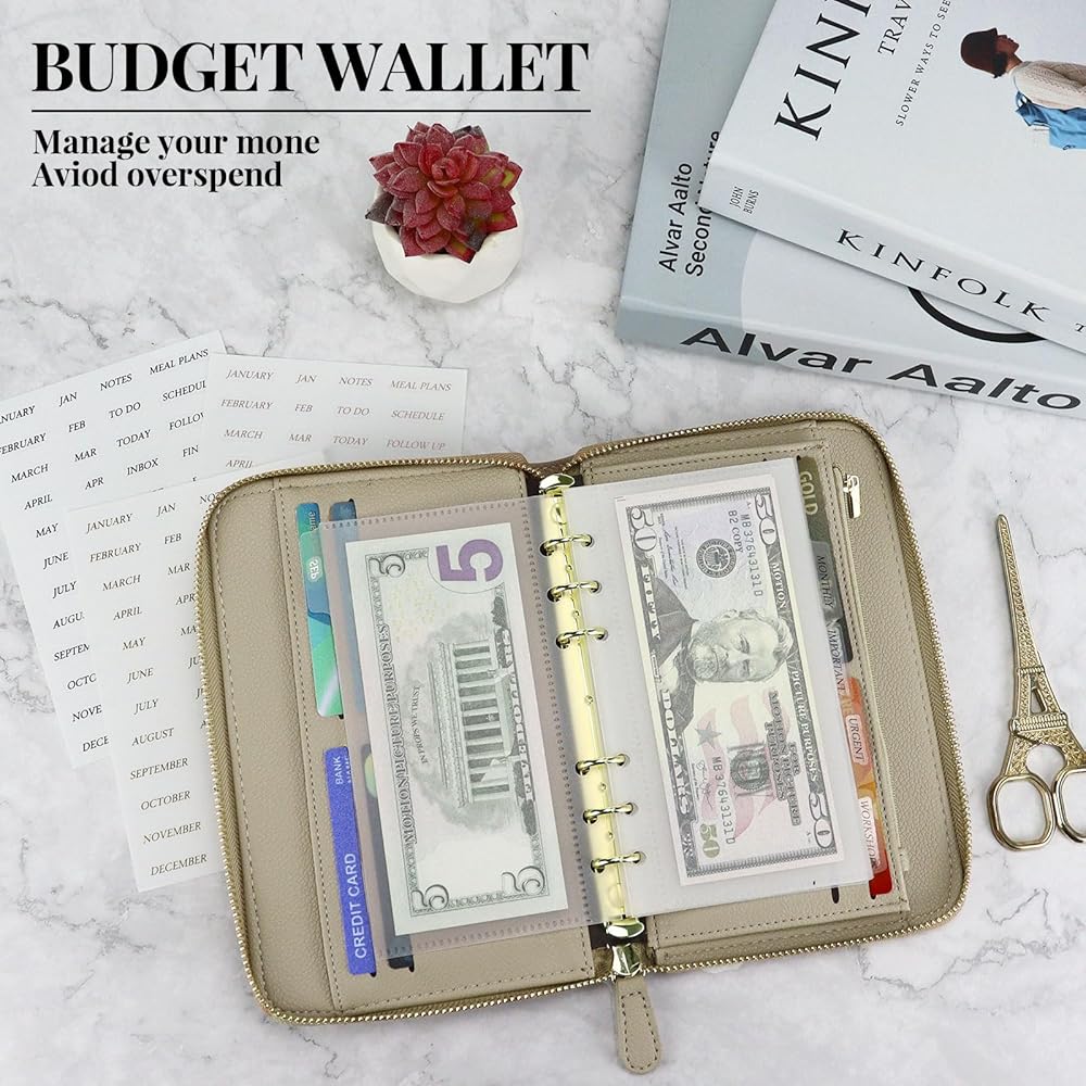 All-in-One Budget Organizer: Combines cash envelopes, divider pockets, and stickers for seamless money management.