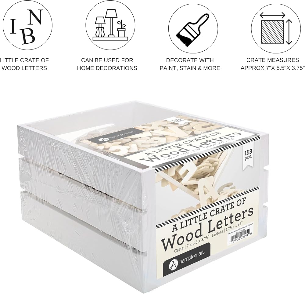 مجموعة الصياغة متعددة الاستخدامات: Hampton Art Little Crate of Wood Letters 153pc مثالية لمجموعة متنوعة من الحرف اليدوية ، مما يوفر إمكانيات إبداعية لا نهاية لها مع رسائل خشبية صغيرة للحرف اليدوية.
