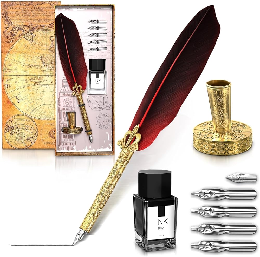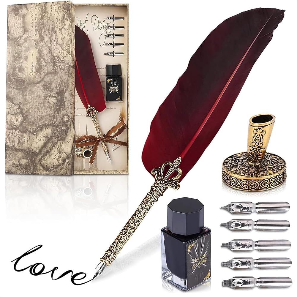 قلم Dip Elegant: هذا القلم النافورة مع الحبر فني للغاية مع بنية مضغوطة وعقد مريح. يتيح هذا القلم وحبر الريش ريشة كتابة الرسائل وورقة المكتب السهلة.