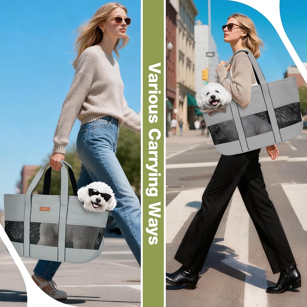 Lekereise Dog Pres Carrier للكلاب الصغيرة ، القطط - محفظة حامل الكلاب مع مقطع تسخير آمن ، حاملة حقيبة حمل الكلاب ، مساحة كبيرة ، تصميم تنفس (رمادي)