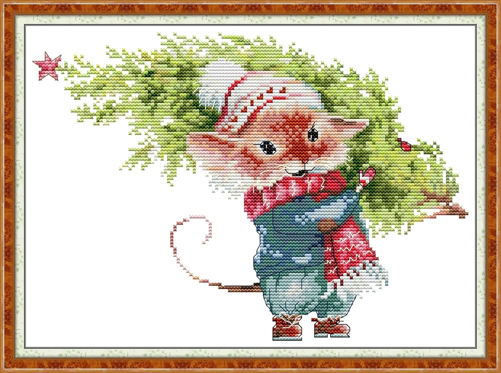مجموعات غرزة CrossDecor مختومة ، مجموعة كاملة من مجموعات الإبرة عبر المبتدئين للمبتدئين ، فنون مجموعة التطريز والحرف اليدوية للهدايا ديكور الجدران المنزلية-شجرة عيد الميلاد المنزل 33 × 25 سم