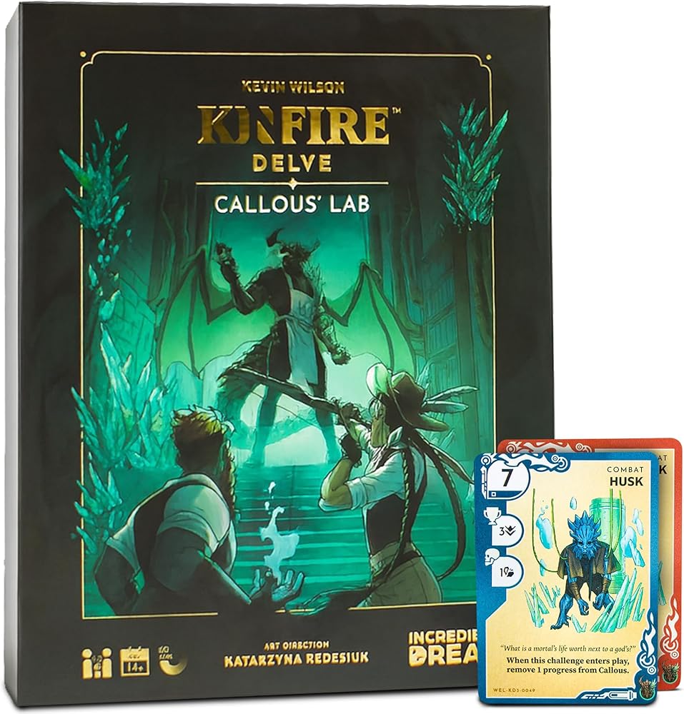 Kinfire Delve: Callous 'Lab | لعبة البطاقة الزناحجة التعاونية السريعة إلى الطاولة | بأسعار معقولة ، مغامرة الخيال | الأعمار 14 وما فوق | صنع