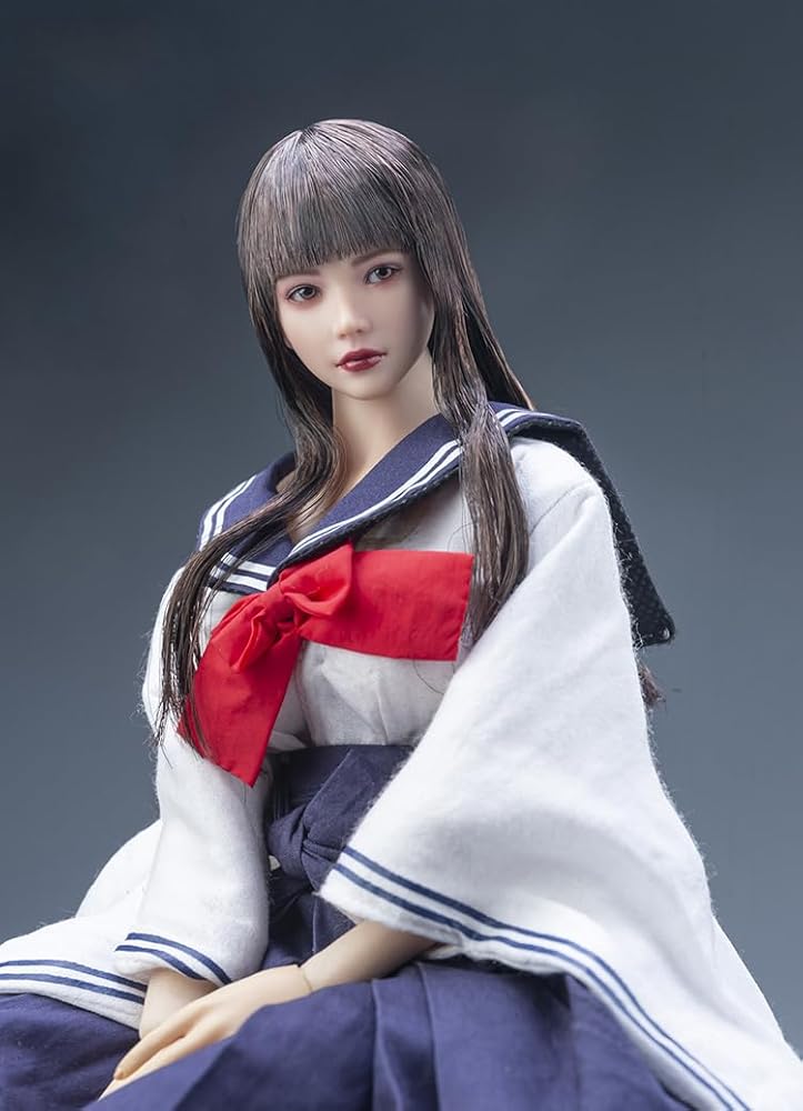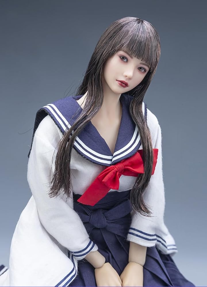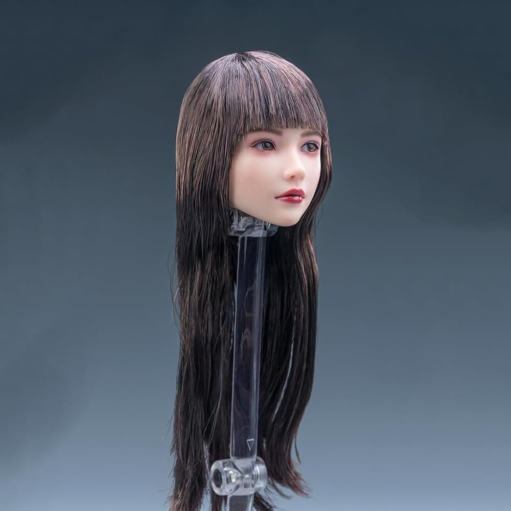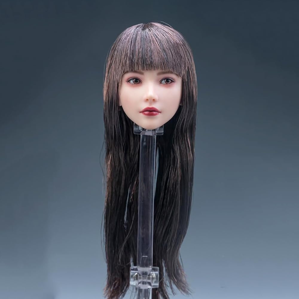 1/6 Scale Planted Hair Female Head Sculpt Cute Young Girl Brown Shoulder Length Hair Straight Bang Head for 12inch Phicen, TBLeague Action Figure