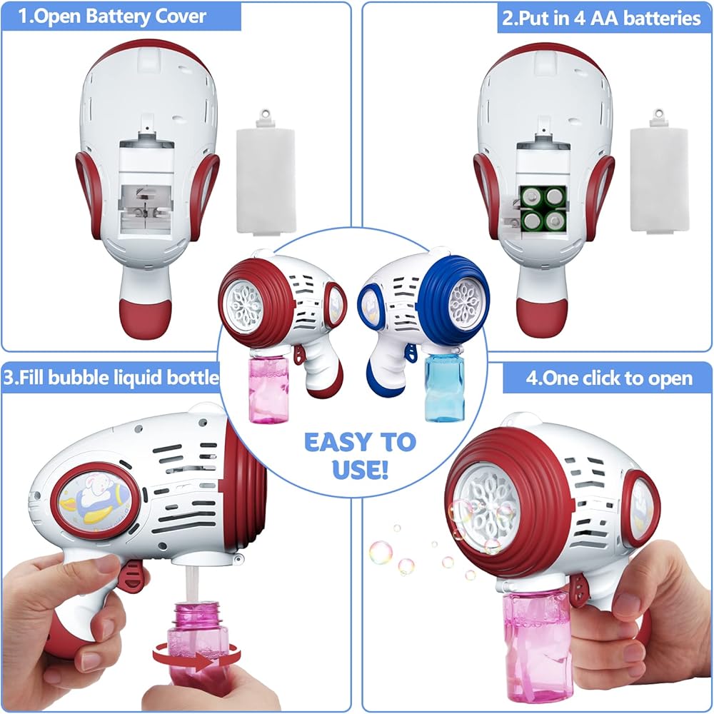 2 PCS Kids Kids Bubble Puns ، 10 ثقوب منفاخ فقاعة أوتوماتيكية مع الضوء الملون ، بنادق صانع الفقاعات للأعمار 3-8 ، هدايا ألعاب الفقاعات لعيد الميلاد ، الحفلات ، عيد الفصح