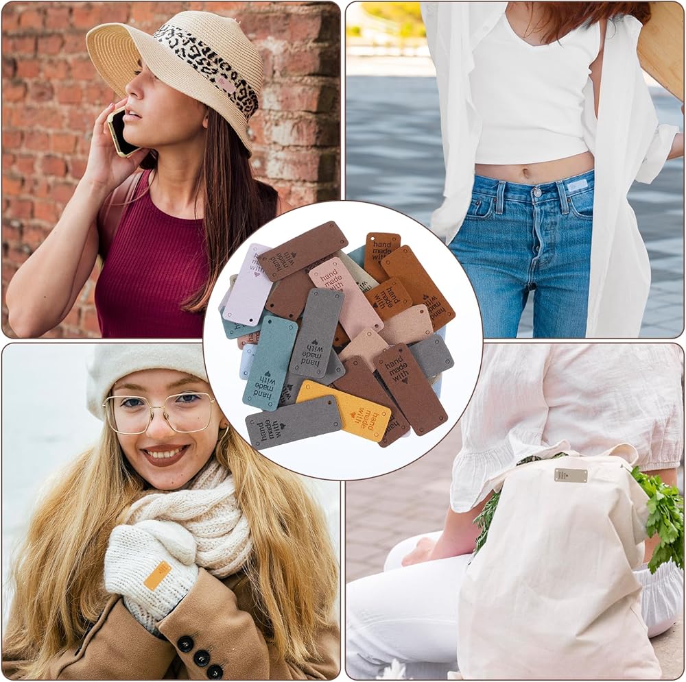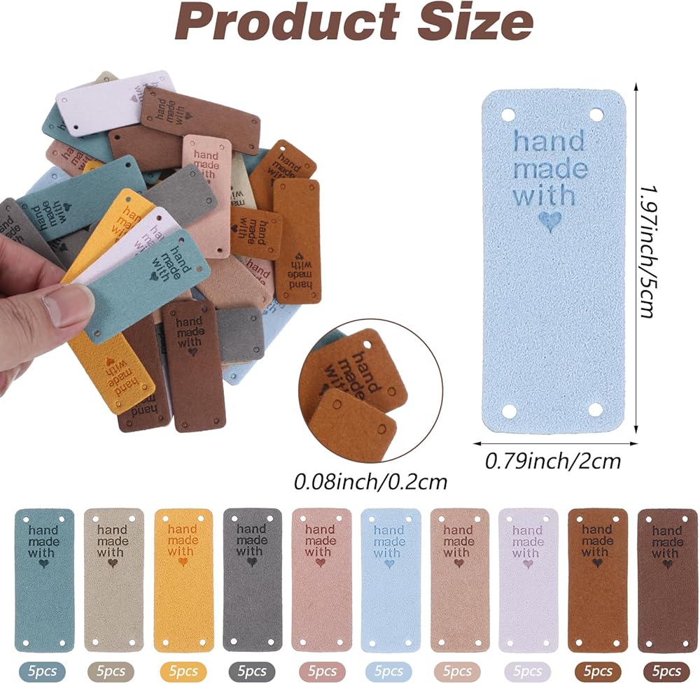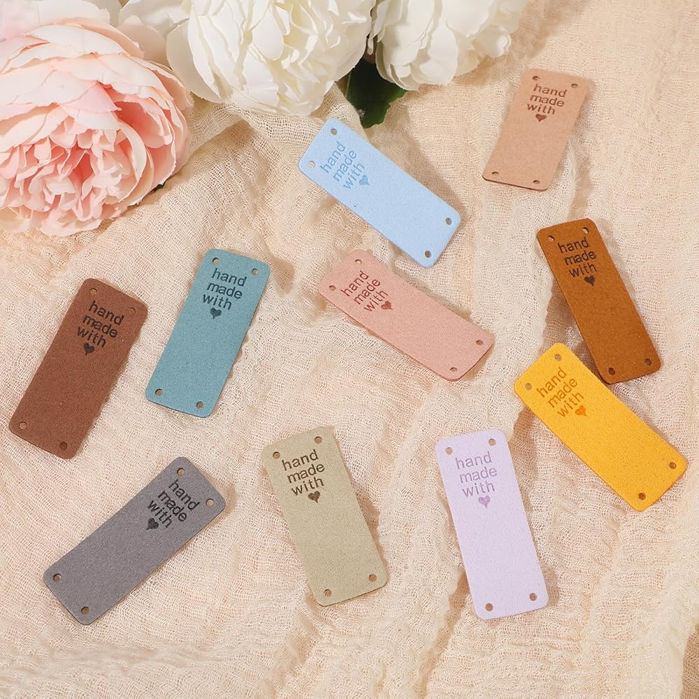 2. These personalized tags for handmade items are made of high-quality PU leather, which is strudy and has a smooth surface. Each crochet label is embossed with clear patterns and text, adding a personalized touch to your work.