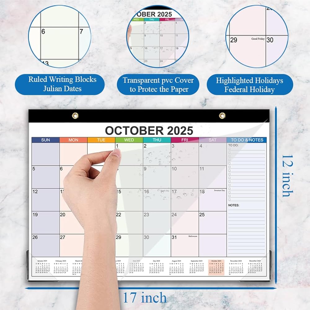 PREMIUM QUALITY - Golden strong twin-wire binding makes it easy for turning pages and enables this 20 months wall calendar to hang on the wall steadily. Monthly wall calendar with thick premium paper to prevent ink bleed-through. Calendar 2025-2026 is a great tool to make your life efficient