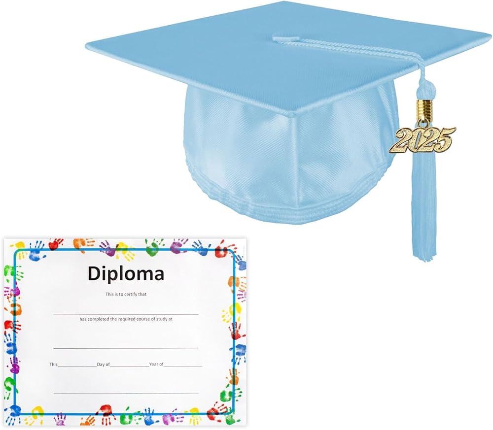 • Includes: 1 Shiny Adjustable Child's Kindergarten Preschool Mortar Board Graduation Hat Cap with Matching 2025 Graduation Tassel
