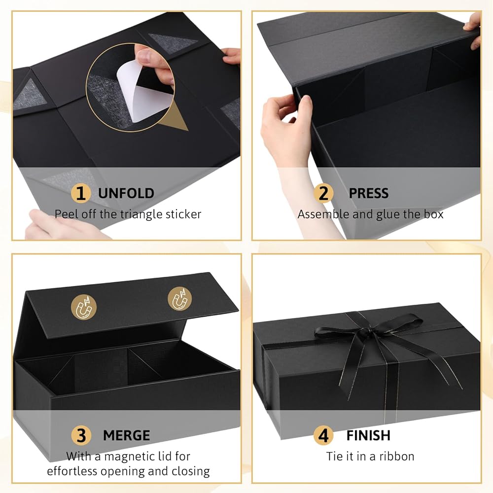 من السهل التجميع - يتميز بتصميم مستطيل قابل للطي مع غطاء مغناطيسي للفتح والإغلاق دون عناء ، يوفر صندوق الهدايا هذا التجميع السريع. مع عدم وجود حاجة إلى شريط إضافي ، يطوي صندوق اقتراح وصيفات الشرف بسهولة معًا خطوتين بسيطتين فقط: قم بتقشر ملصق المثلث ، ثم قم بتجميع الصندوق والغراء.