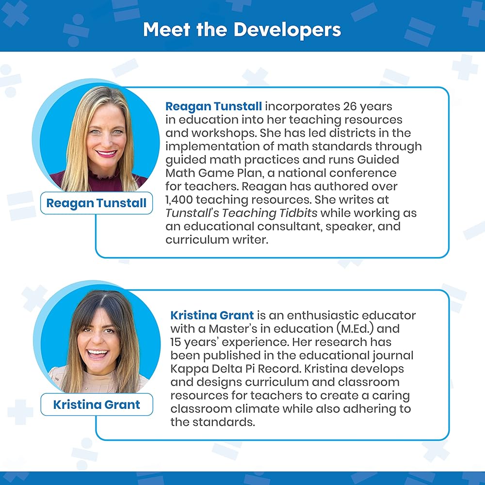 Use the sets at independent stations or as shared resources during small group instruction. Support student success by empowering students to select the tools that they need to solve any math problem! Reagan Tunstall incorporates 26 years in education into her teaching resources and workshops. Reagan's passion for teaching, combined with her speaking experience, drives her to share the effectiveness of developing a community of mathematical thinkers in the classroom. She has led districts in the implementation of math standards through guided math practices and runs Guided Math Game Plan, a national conference for teachers. Reagan has authored over 1,400 teaching resources, including Guided Math, a supplemental K-5 curriculum manufactured and distributed by hand2mind. Reagan writes at Tunstall's Teaching Tidbits while working as an educational consultant, speaker, and curriculum writer. Kristina Grant is an enthusiastic educator with a Master's in education (M.Ed.) and 15 years' experience. Kristina has a passion for creating a constructive learning culture. Her classroom management methods paired with her curriculum-conscious techniques allow her students to f lourish socially, emotionally, and academically. Her research has been published in the educational journal Kappa Delta Pi Record. She shares her ideas of combining math and SEL with teachers as a national presenter. Kristina develops and designs curriculum and classroom resources for teachers to use to create a caring classroom climate while also adhering to the standards.