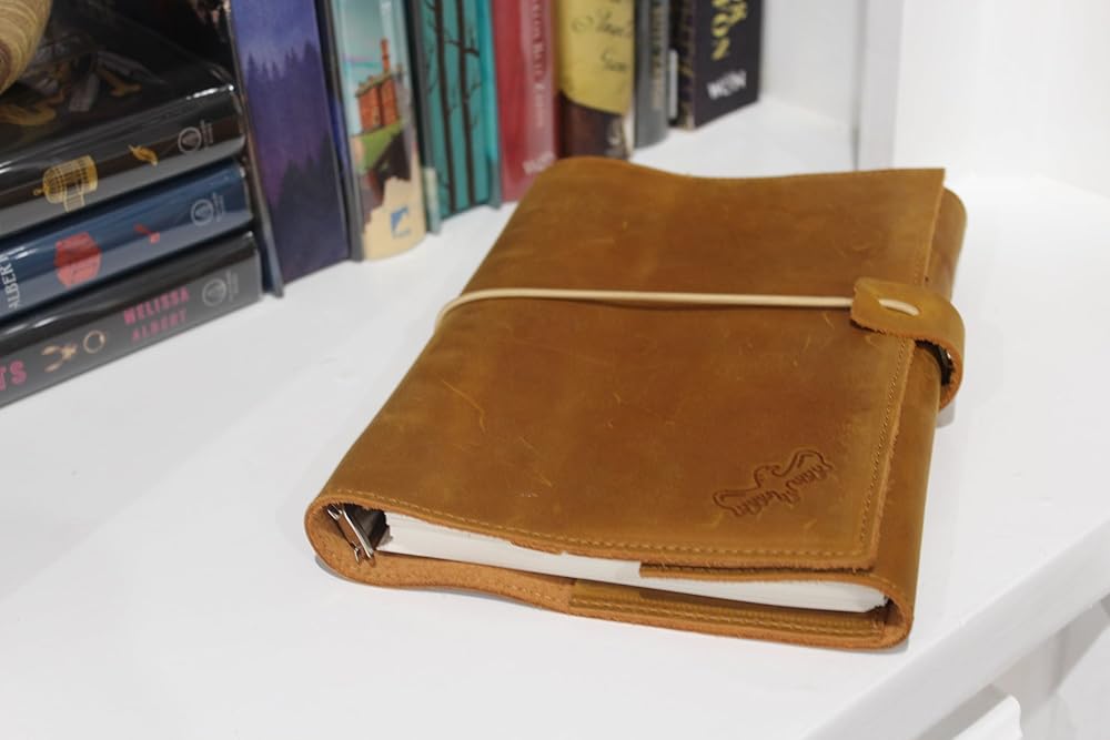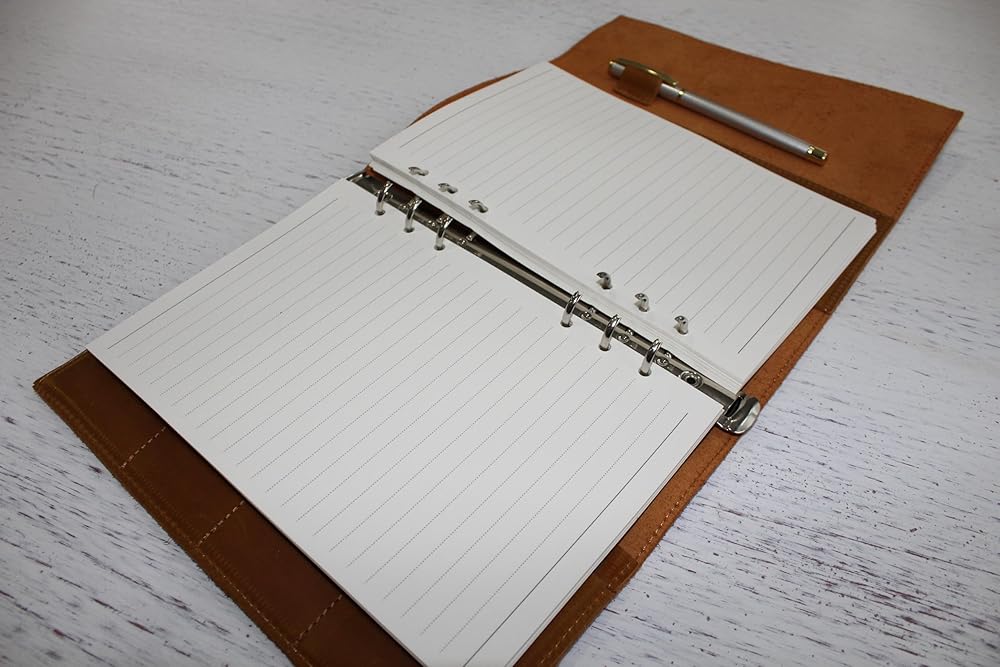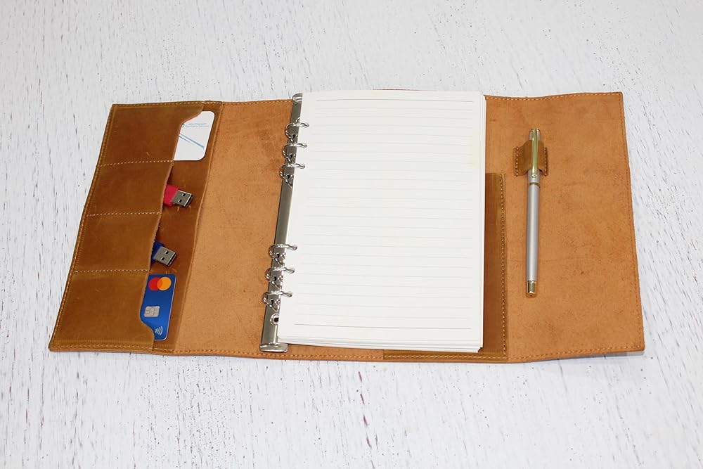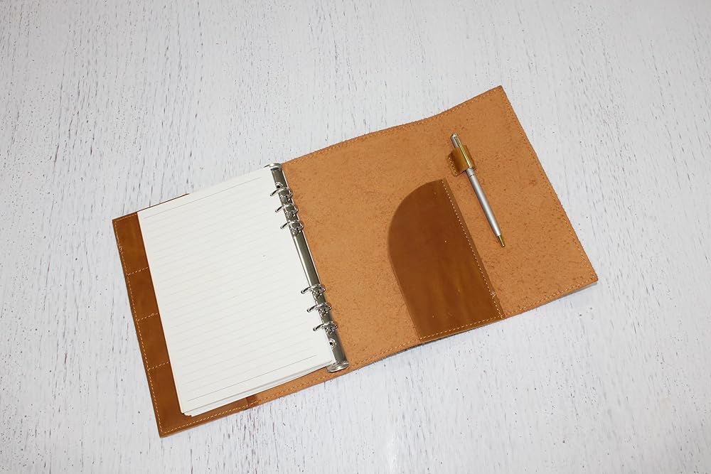 Red Team Sauce Rustic A5 Leather Binder Journal-9 × 6.5 "قابلة لإعادة الملء من 6 حلقات مع جيوب وحاملي USB-دفتر جلدي أصلي مصنوع يدويًا-متوافق مع التجوال وغيرها