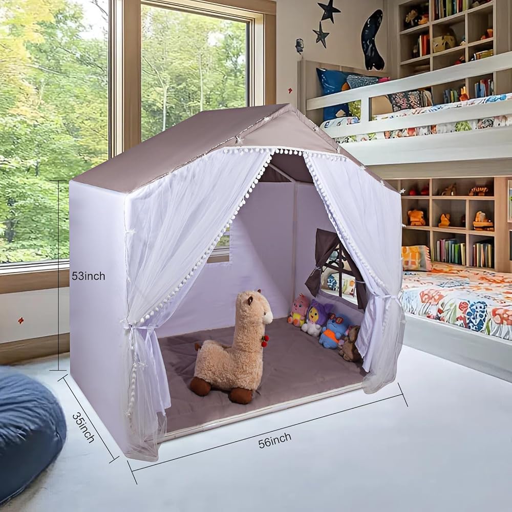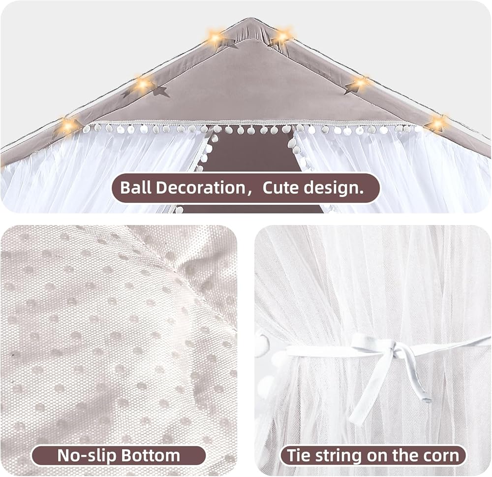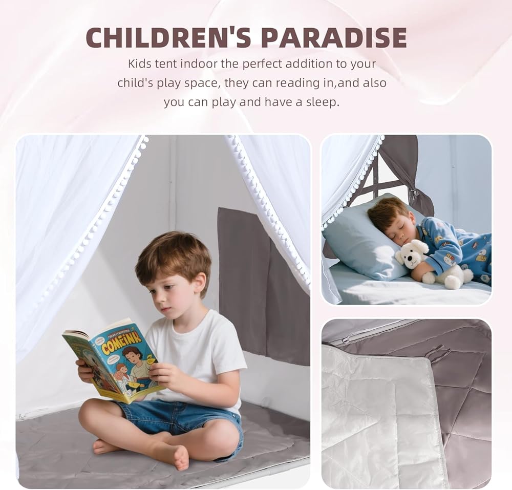 • 【من السهل التجميع】: نسيج خيمة اللعب هذا هو قطن البوليستر والإطار سهل وضعه ويمكنك بنائه مع أولادك وفتياتك لبناء منزلهم ، وسيستمتعون.