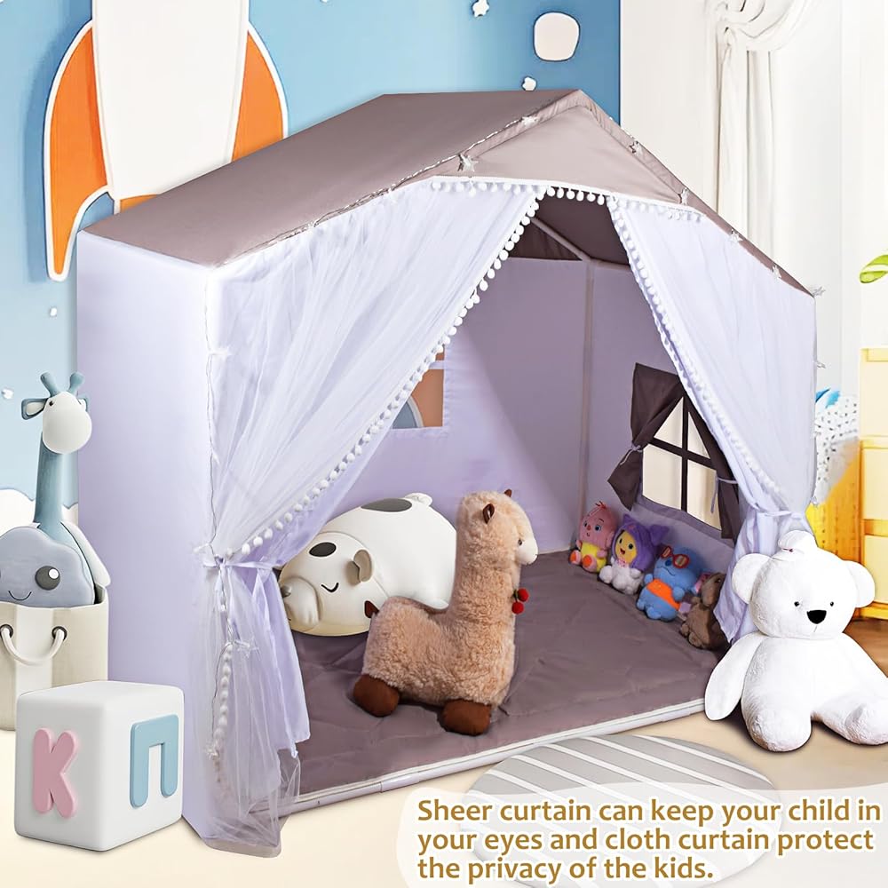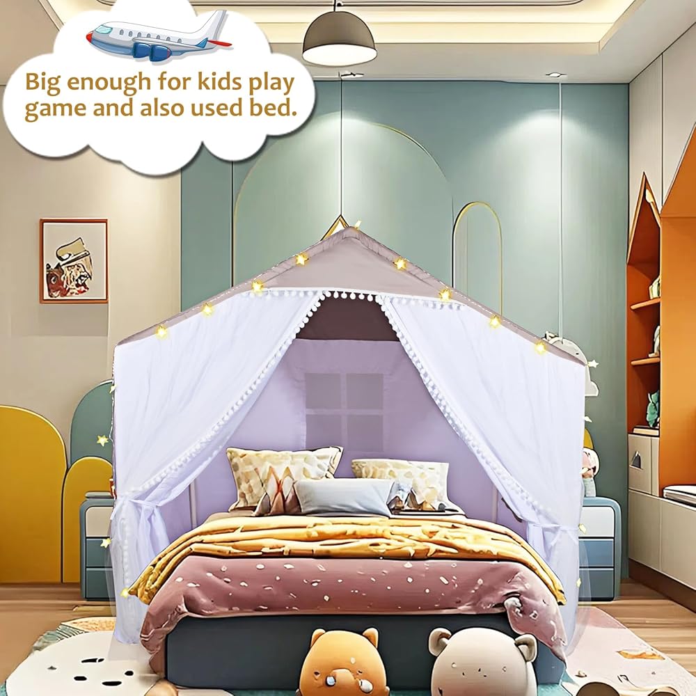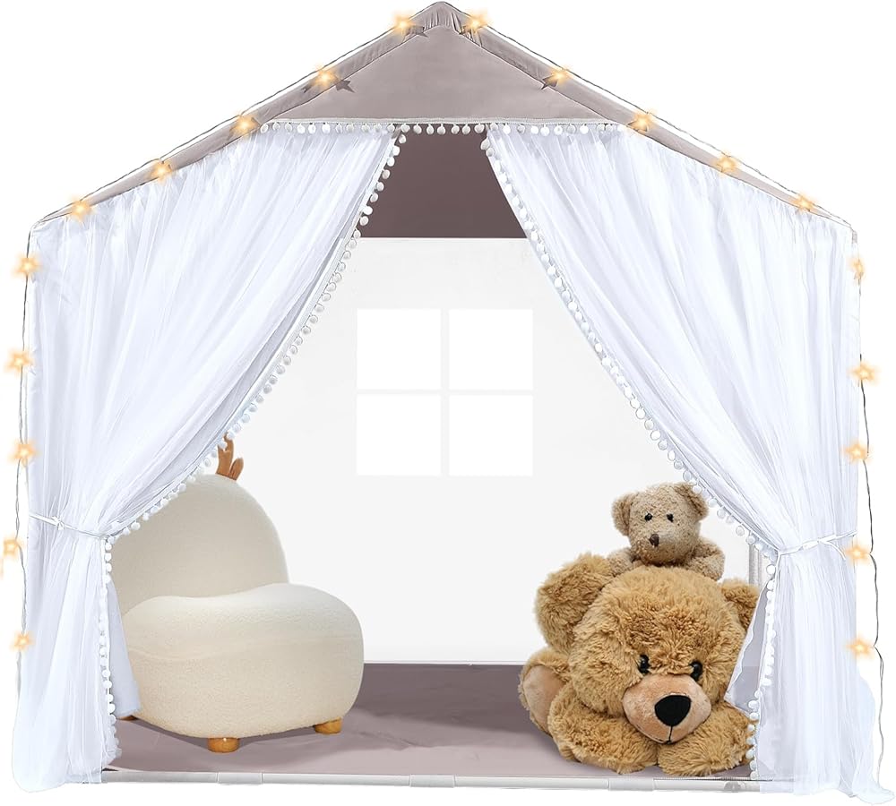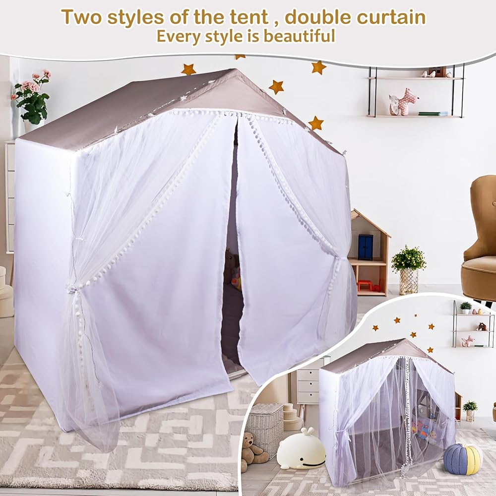 • 【من السهل التجميع】: نسيج خيمة اللعب هذا هو قطن البوليستر والإطار سهل وضعه ويمكنك بنائه مع أولادك وفتياتك لبناء منزلهم ، وسيستمتعون.