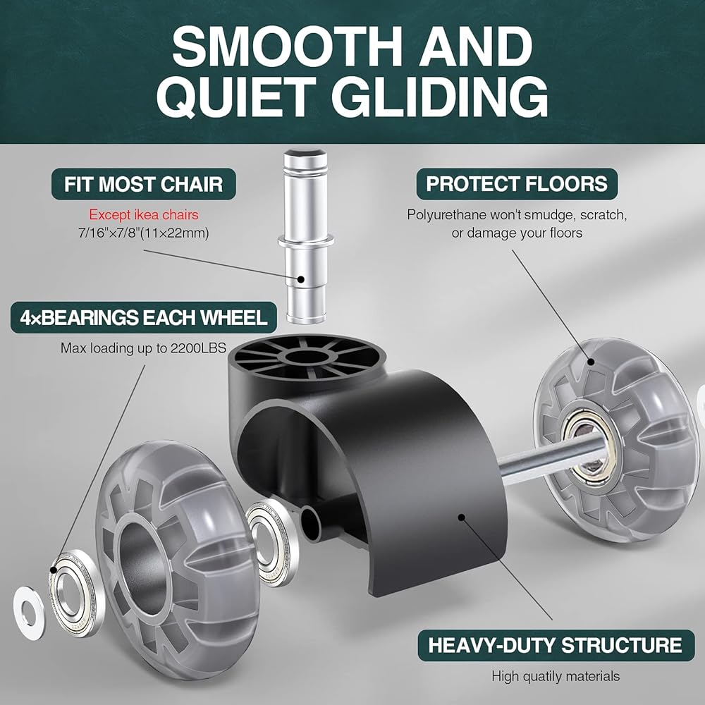 Office Chair Wheels Replacement-Heavy Duty Rubber Wheels for Office Chair(2200Lbs)