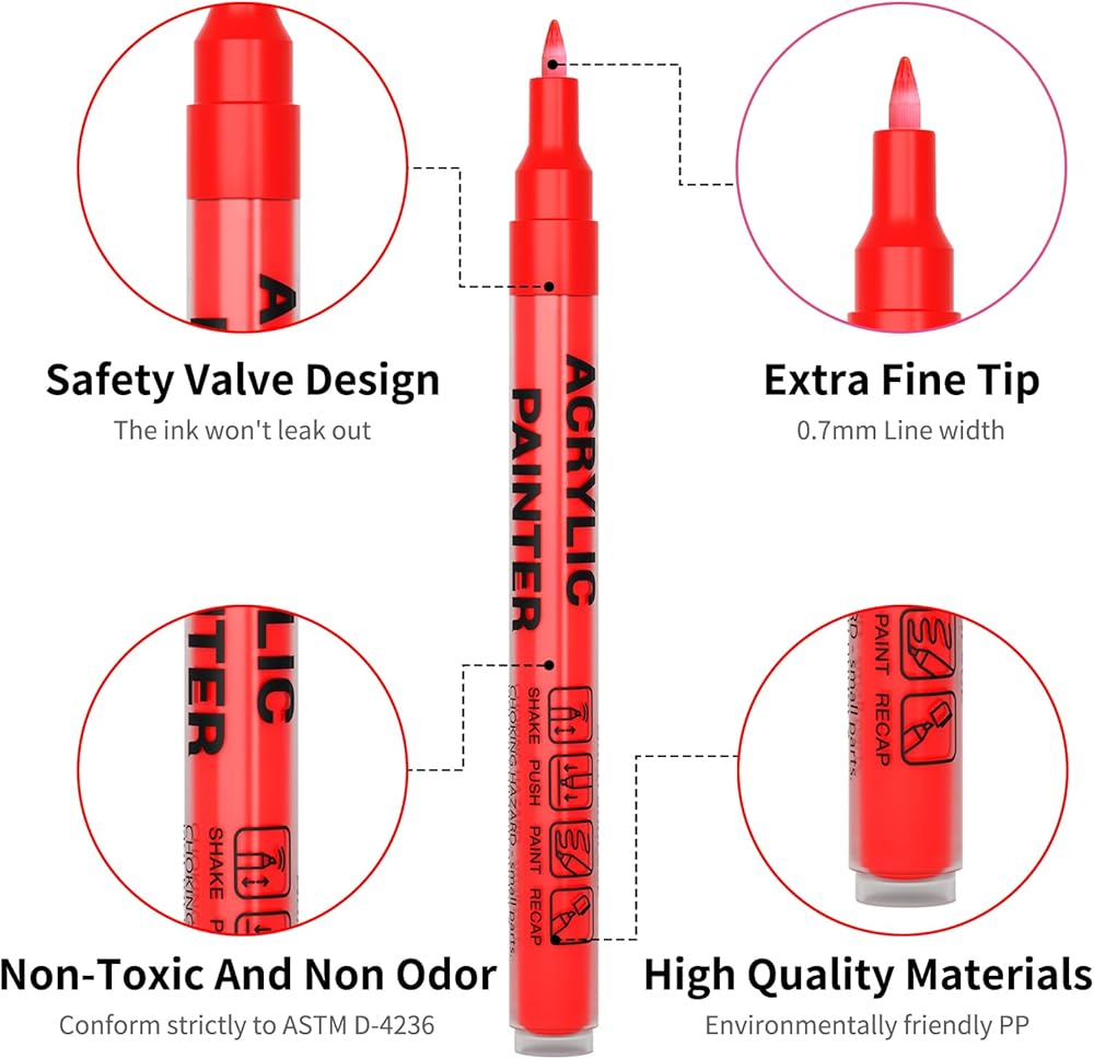 غير سامة وآمنة: تعتبر علامات الأكريليك المستندة إلى الماء ، والامتثال لمعيار الولايات المتحدة-4236 الذي يضمن أن علامات النسيج لا تشكل مخاطر صحية أثناء الاستخدام ، مثالية للطلاء والرسم واللوازم الفنية للبالغين
