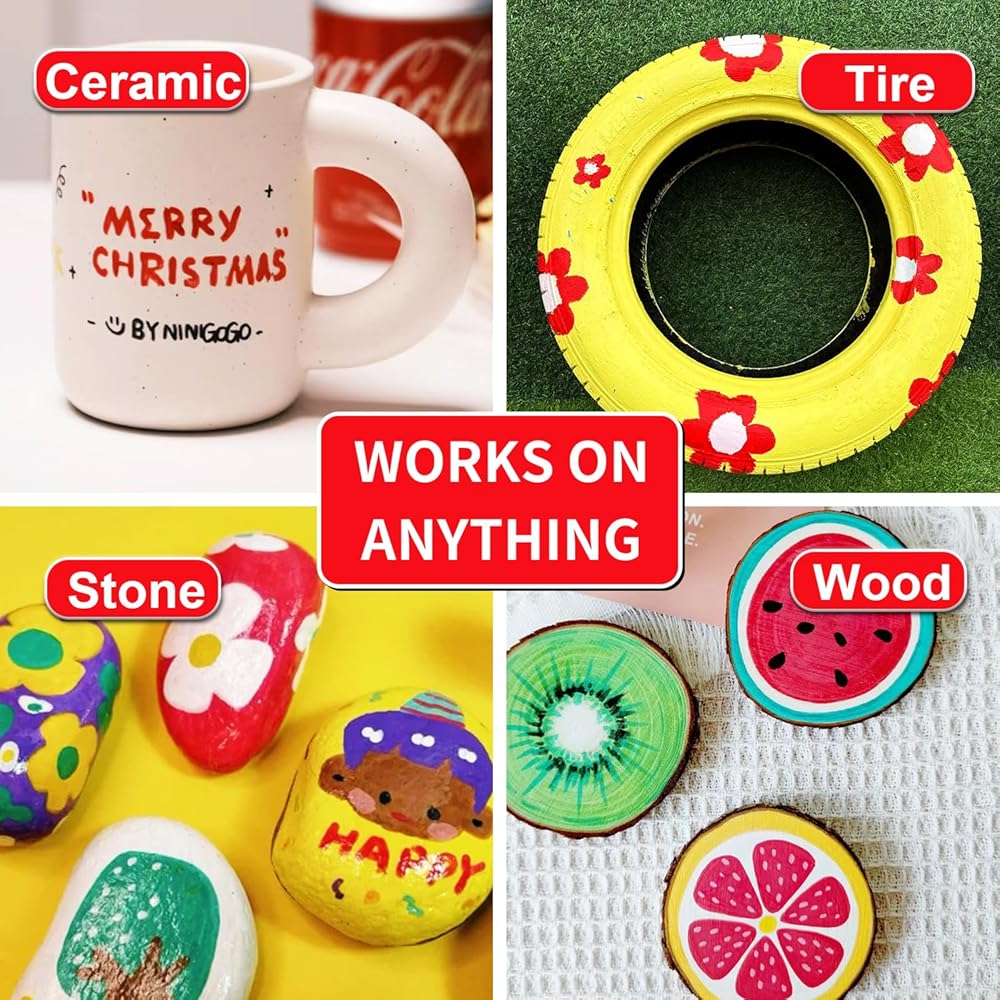 العمل بشكل جيد على السطح المتعدد: تتميز علامات الفن للأطفال بالحبر الغامض الفريد الذي يوفر تغطية ممتازة ، حتى على الأسطح المظلمة أو الخفيفة. تعد أقلام الفرشاة ذات الألوان المائية مثالية لإنشاء الرسوم التوضيحية والتصاميم المعقدة على القماش والخشب والقطن والصخور والورق والمعادن والسيراميك والزجاج والأظافر والسلاح والجلد والمزيد