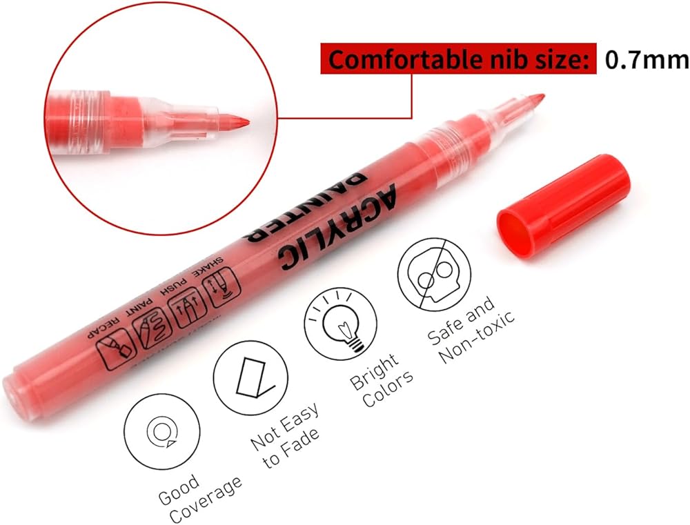 مريح للاستخدام: تختلف عن علامات الأكريليك العادية من نوع الدفع ، تم تصميم علامات الألوان المائية الخاصة بنا للبالغين مع نظام تدفق مستمر ، فهي تلغي الحاجة إلى الهز ويمكن استخدامها مباشرة. ملاحظة: إذا كنت تستخدم لأول مرة ، فافهز العلامة برفق لخلط الحبر قبل الاستخدام ؛ يرجى تشديد الغطاء ووضع علامات الاكريليك على الأقلام أفقيًا إذا لم تستخدمها