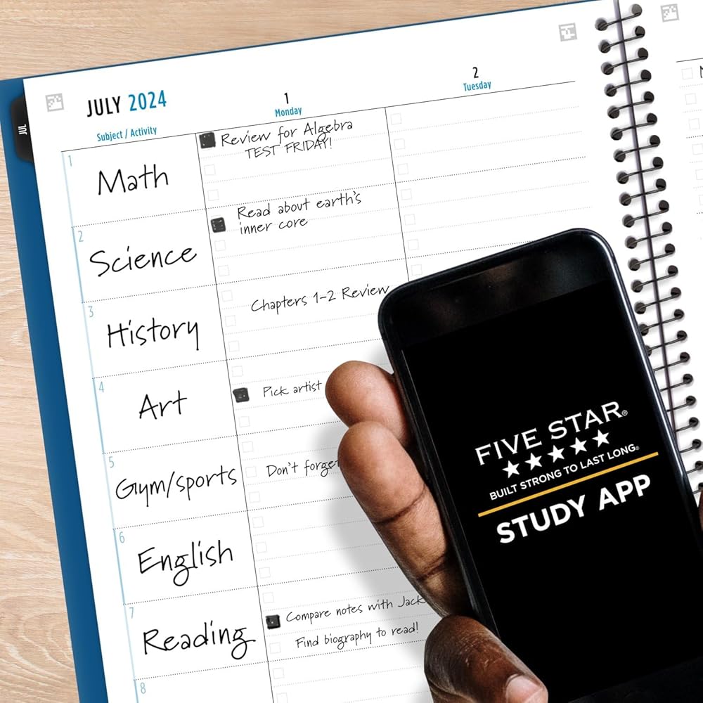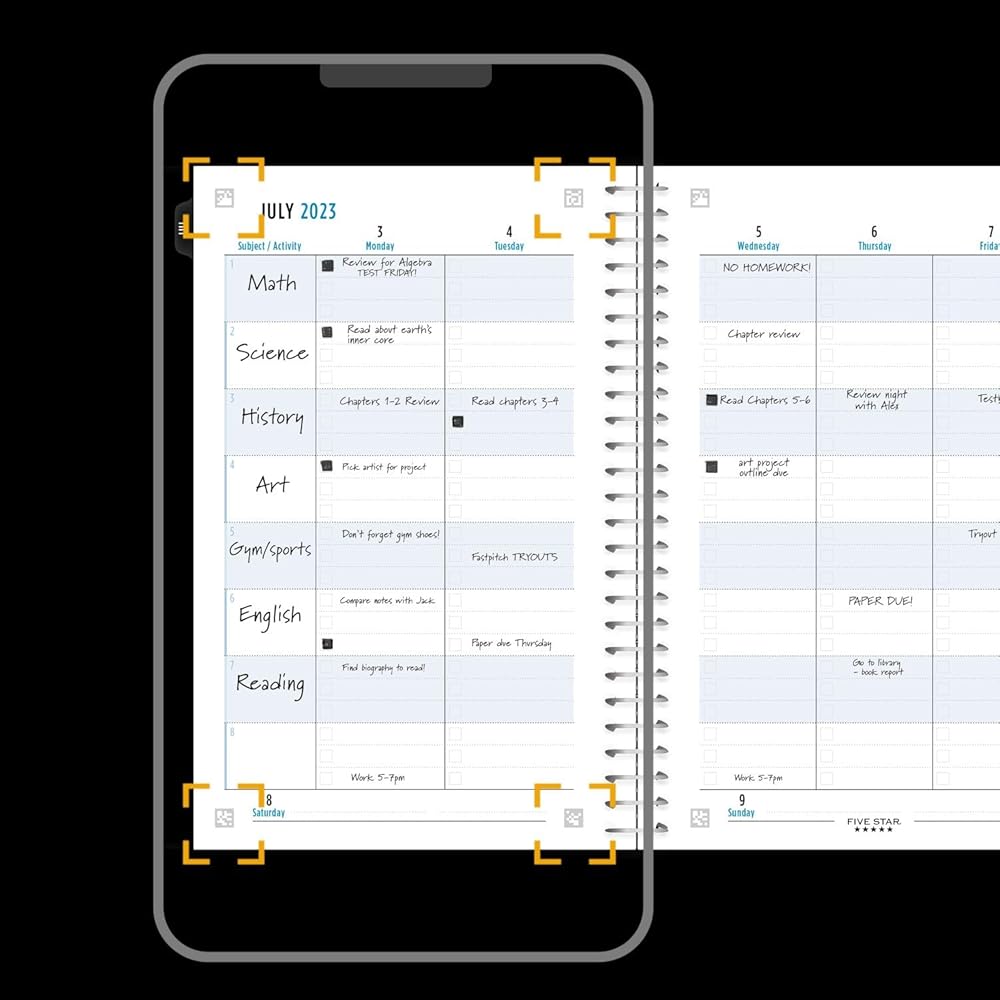 Sync your planner to your phone with the Five Star Study App. Scan the planner pages to track and manage your assignments to access them anywhere, anytime