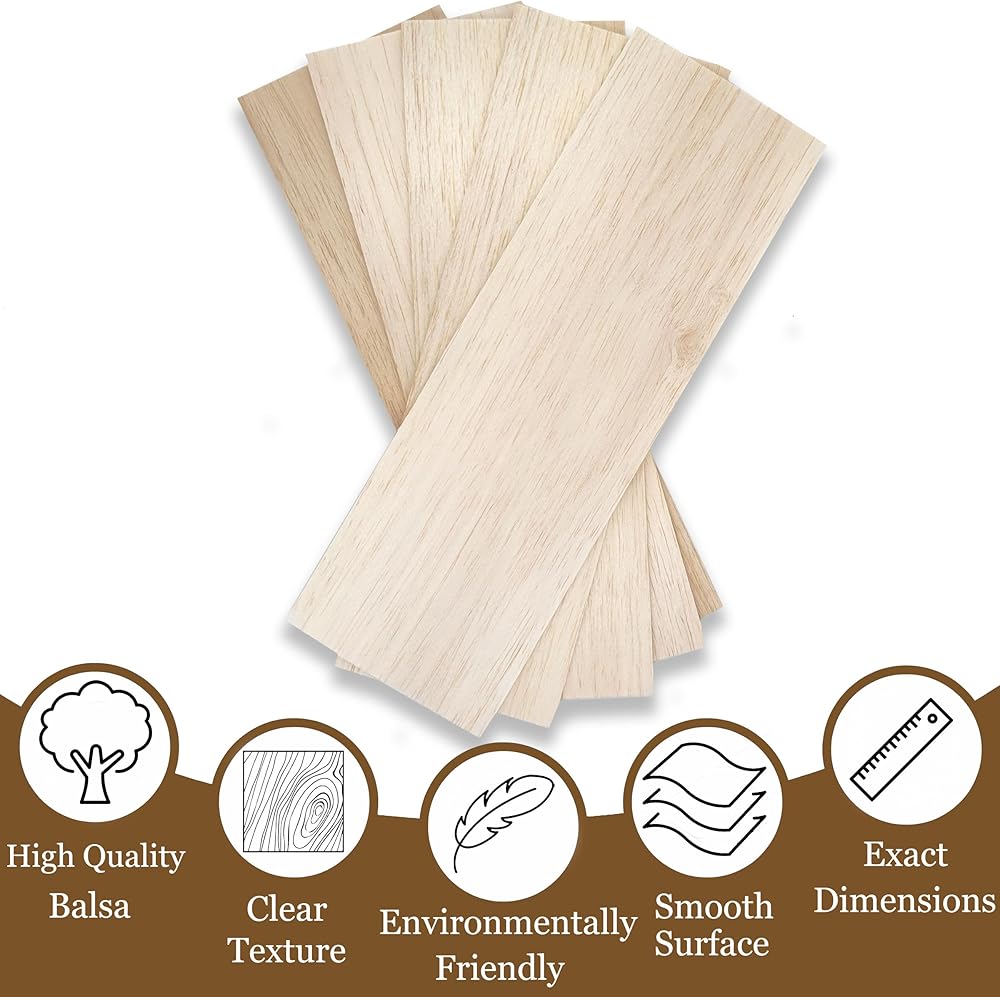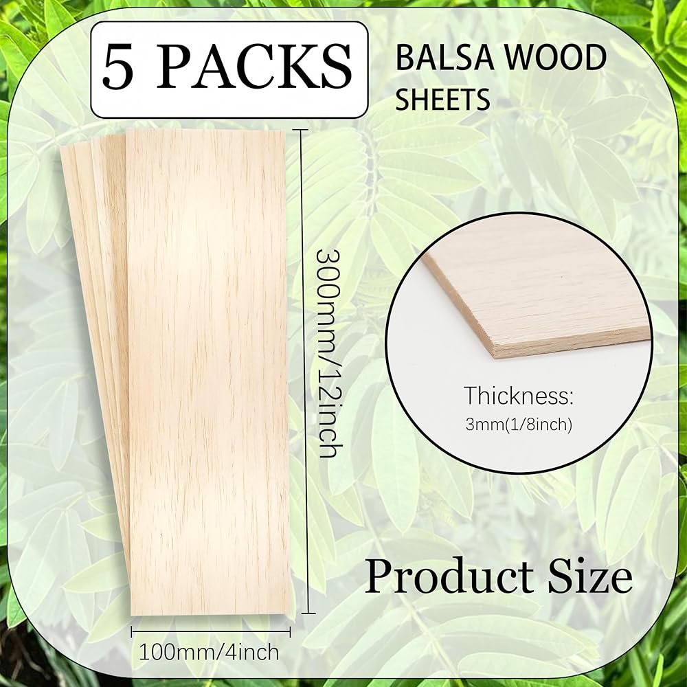 Balsa Wood Sheets Package Includes: 5 Unfinished Balsa Wood Sheets Measuring About 300 x100 mm /12 x 4 Inches, Thickness: About 3mm /0.11 Inches., Perfect for Crafts, Models, and Diy Projects