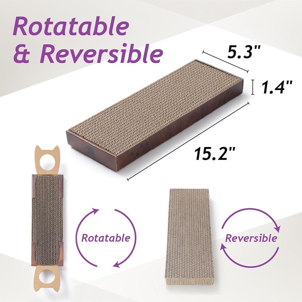 • Premium quality, high-density cardboard produces less paper waste, for easy cleanup and longer scratcher life. Reversible for 2X the scratching fun.